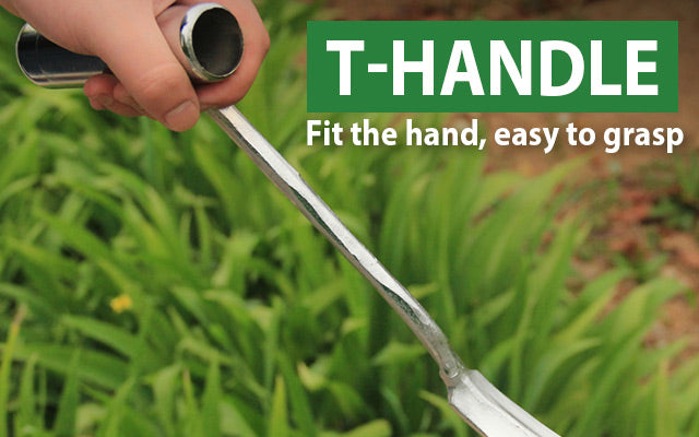 Положите эту простую в использовании садовую прополка и инструмент для пересадки на землю и Выкопайте все корни, стебли и листья через кончик, помогая вам избавиться от сорняков и перемешивания беспокойства.