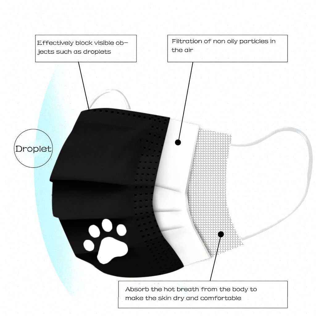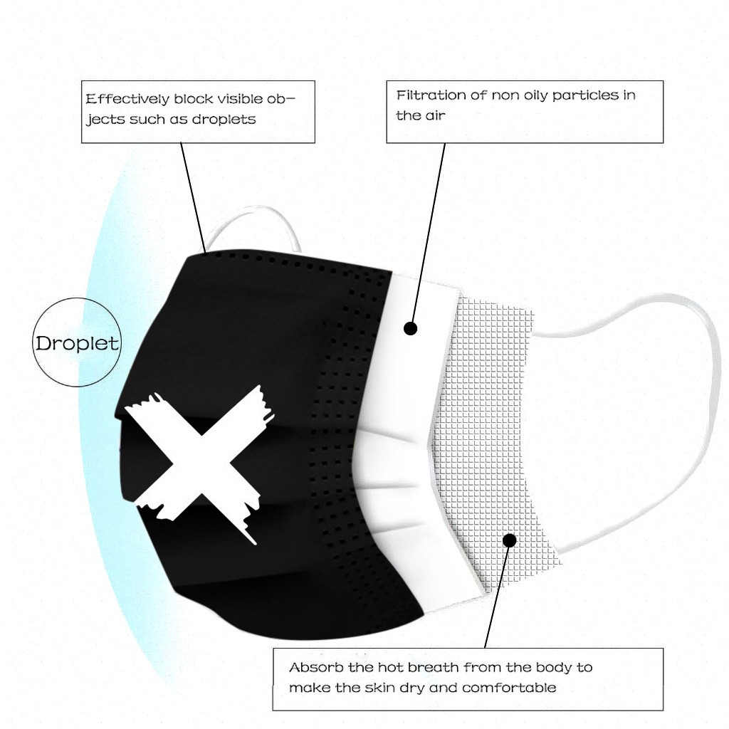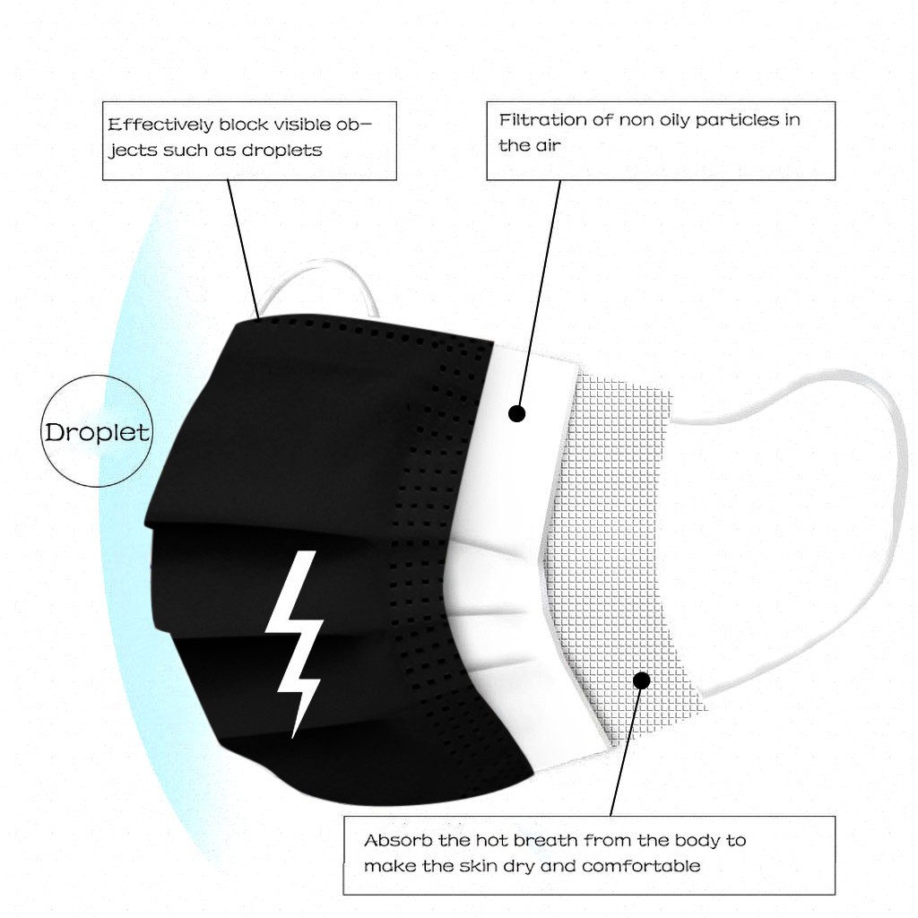protection: non-woven outer layer + filter paper layer + skin friendly non-woven inner layer. Breathable and comfortable, low breathing resistance.
