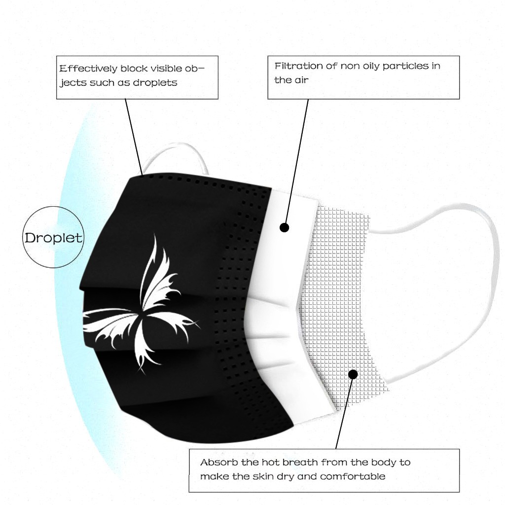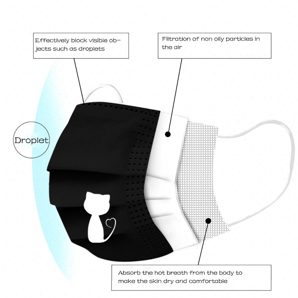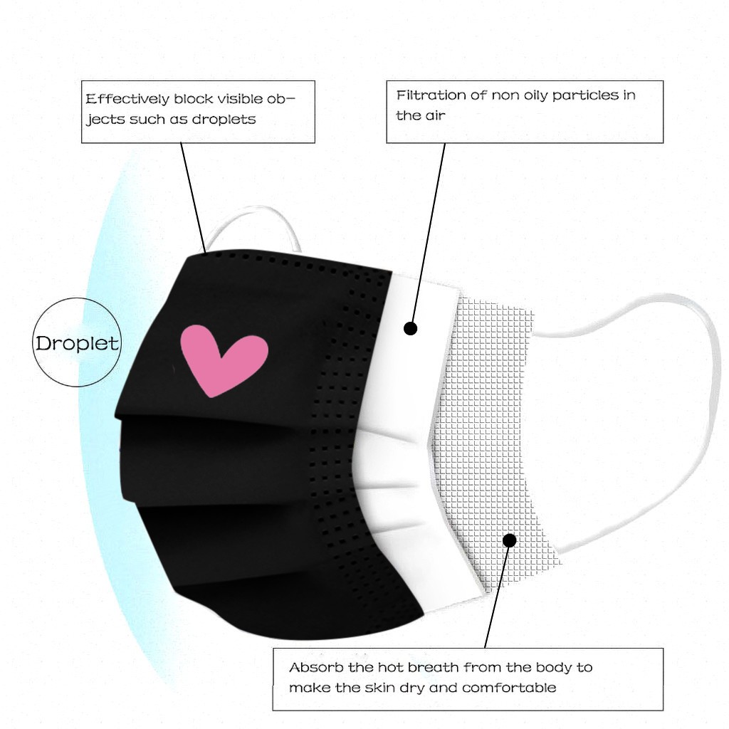 protection: non-woven outer layer + filter paper layer + skin friendly non-woven inner layer. Breathable and comfortable, low breathing resistance.