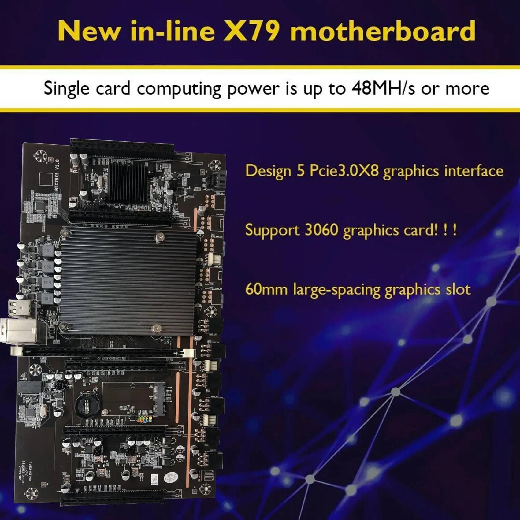 BTC Mining материнская плата BTC79X5 V1.0 LGA 2011 DDR3 поддержка s 32G 60 мм Шаг поддержка RTX3060 видеокарта для BTC Miner