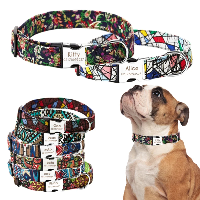 Тип: нейлоновый ошейник для собак, персонализированный ошейник для домашних животных с гравировкой, светоотражающая табличка для маленьких, средних и больших собак, Pitbull, мопс