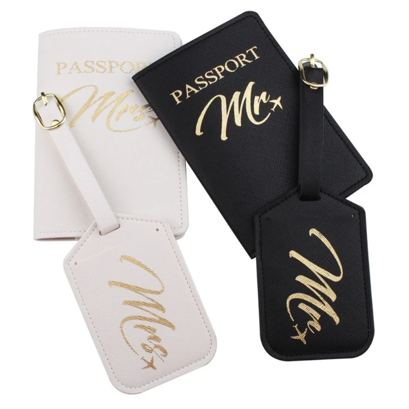 4 шт./набор, Mr Mrs PU кожаный чехол для паспорта, держатель с бирками для багажа, для пар, для путешествий, ID, кредитная карта, защитный чехол для женщин и мужчин