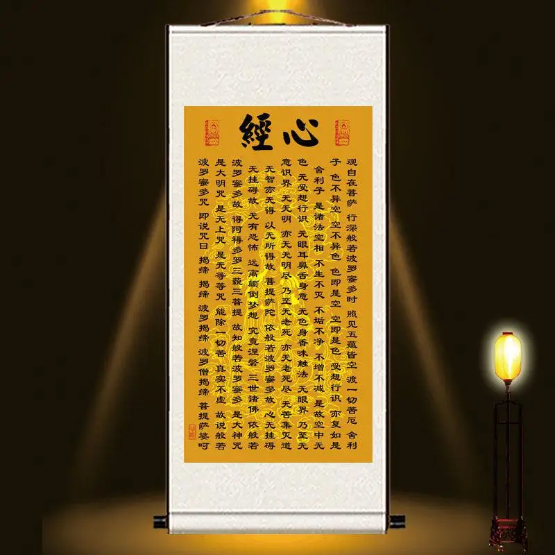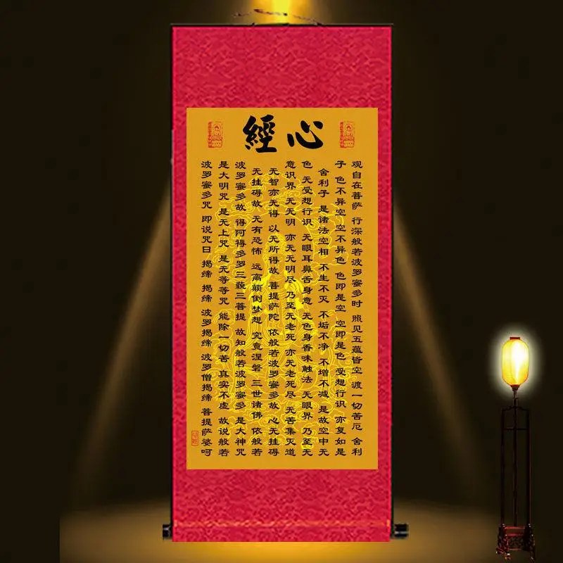 Картина в виде сердца, сутра, настенная живопись, Prajna Guanyin Heart Sutra Zen Magnification Recite the Buddha Town House, китайский стиль, декоративная шелковая прокрутка, живопись