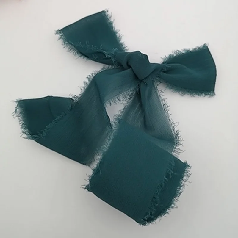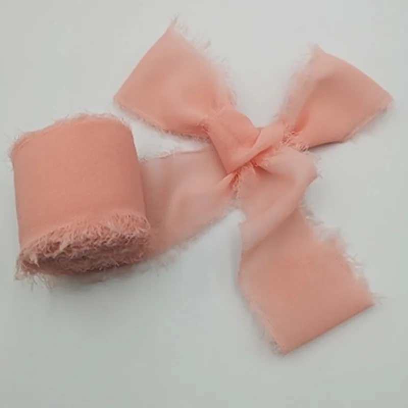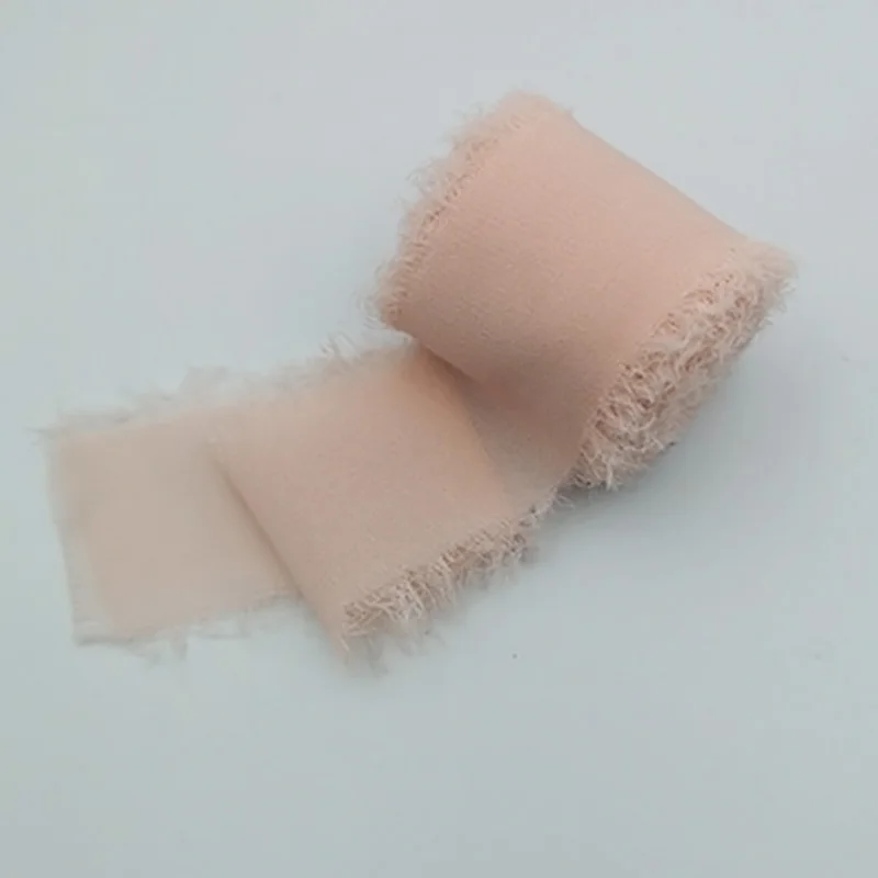 5 метров/рулон, 3,8 см шелковая лента ручной работы из шифона с потертыми краями для свадебных приглашений, букетов, лента с бахромой