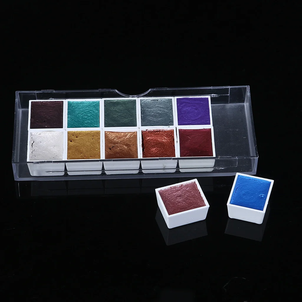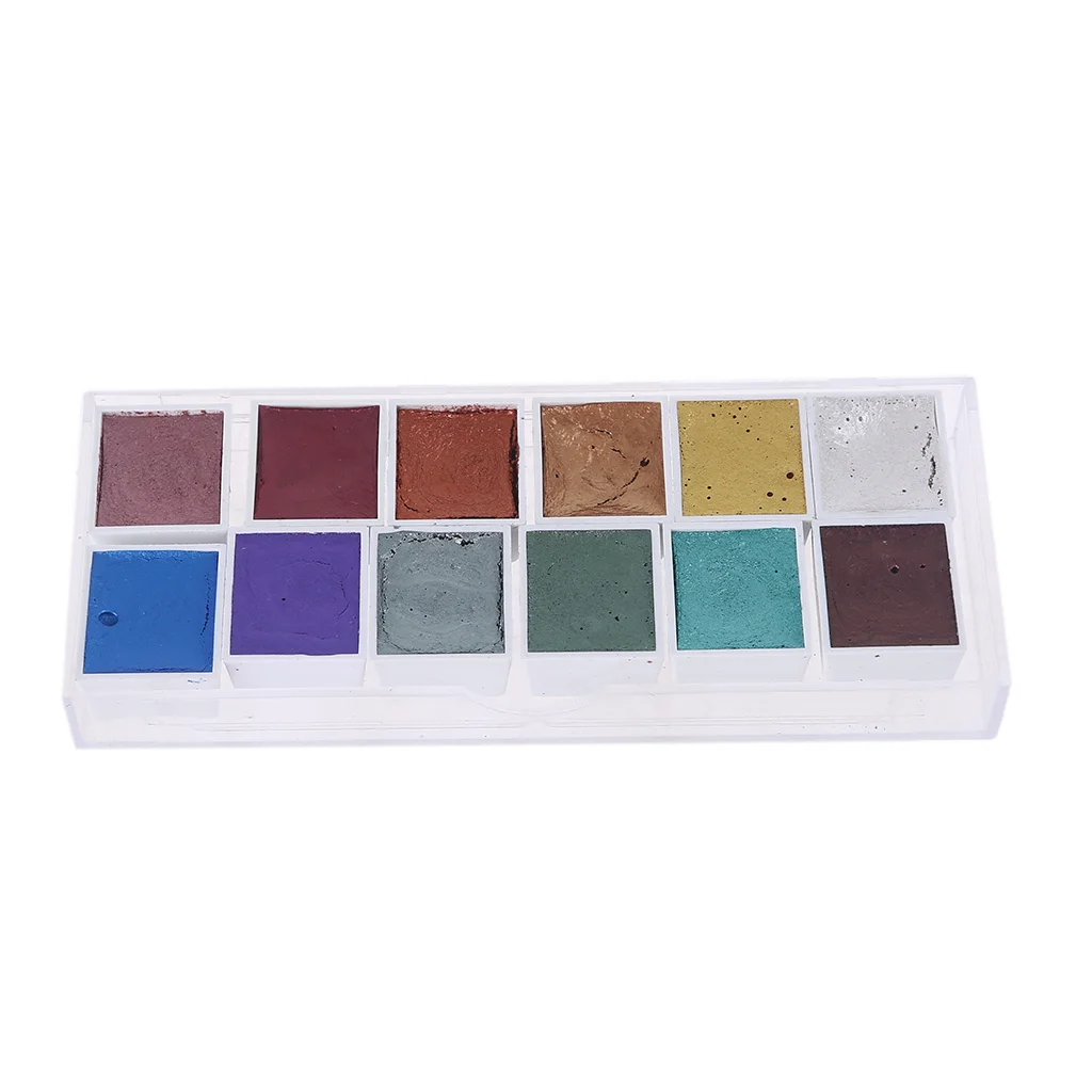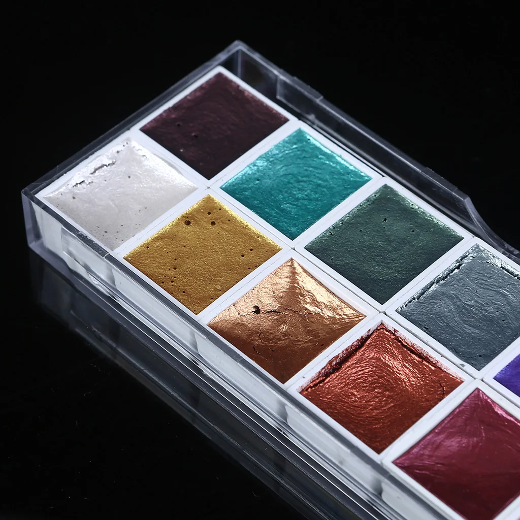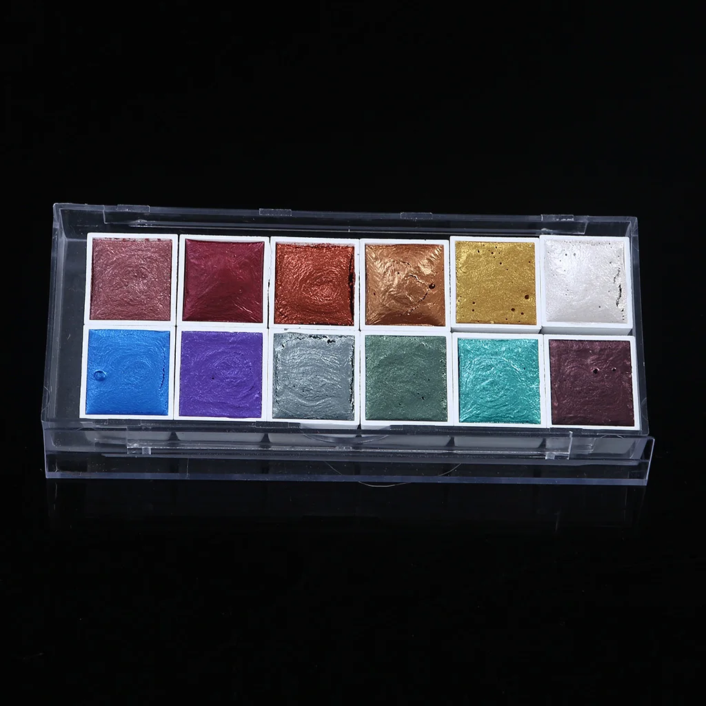 1.12 цветов перламутровой акварельной краски. Цвет чистый и насыщенность Высокая. Пигменты в этих набор акварельных красок имеют очень хорошую Емкость покрытия и предлагают быстрое высыхание.