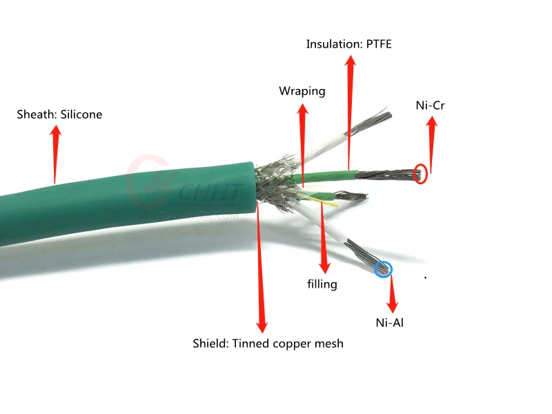Материал проводника:Положительный Ni-Cr, отрицательный Ni-Al