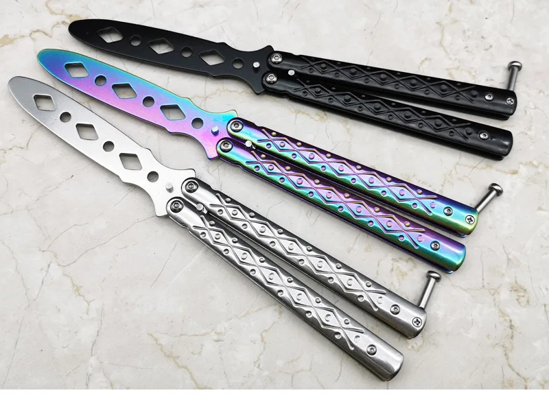 Этот продукт является неточенным balisong тренировочным инструментом, который изготовлен из высококачественного металлического материала для длительного использования. Незаточенный дизайн защитит вас от боли, вы можете быть уверены в использовании. С оригинальным дизайном, простой в обращении, удобный в использовании. Идеально подходит для тренировки трюков.