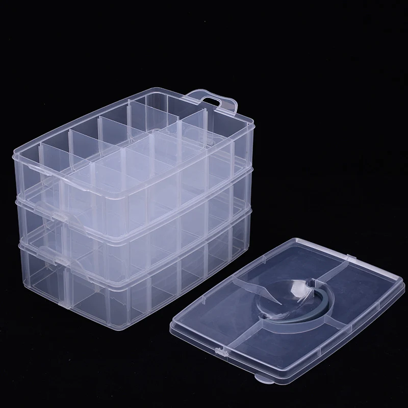 3 слоя 18 отсеков прозрачная коробка для хранения Контейнер органайзер для ювелирных изделий и бусин чехол