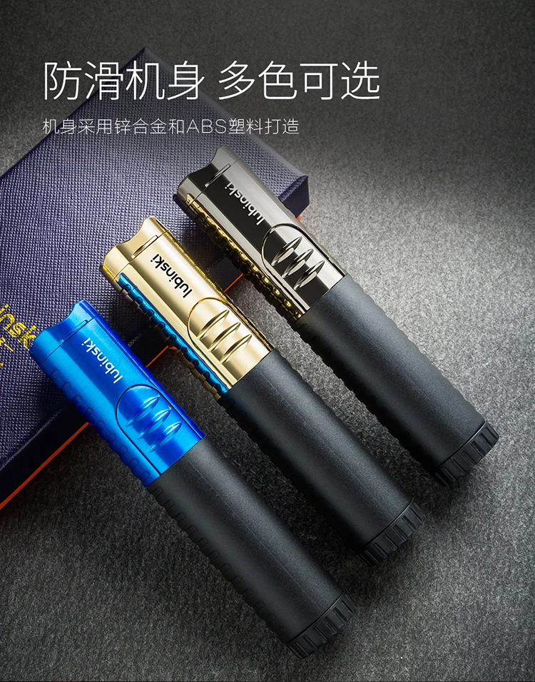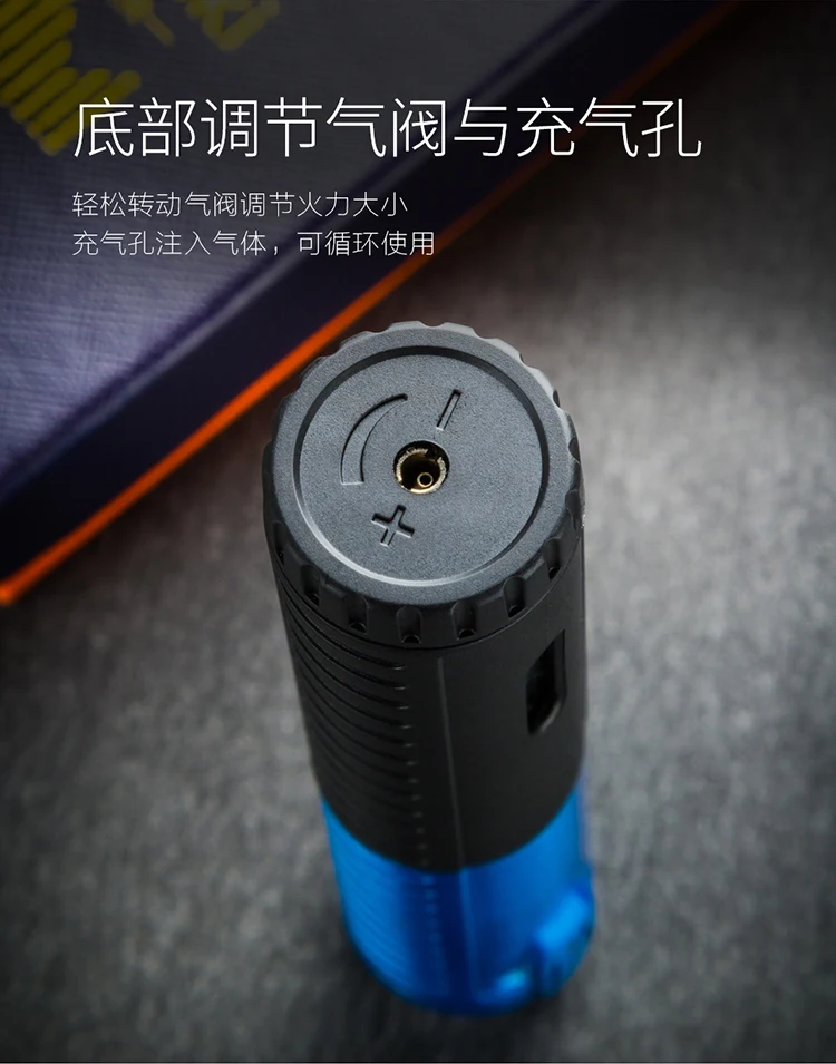 2021 Новое поступление ветрозащитная электрическая зажигалка для сигар портативная карманная металлическая газовая Бутановая Зажигалка для сигар синяя Зажигалка для пистолета фонарь CL-002