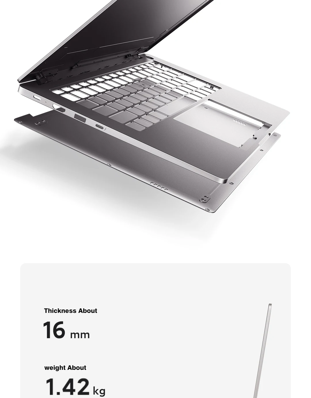 315,6 мм x 220,4 мм x 17,25 мм (тонкий до 16 мм), зажигалка около 1,42 кг