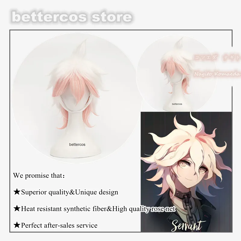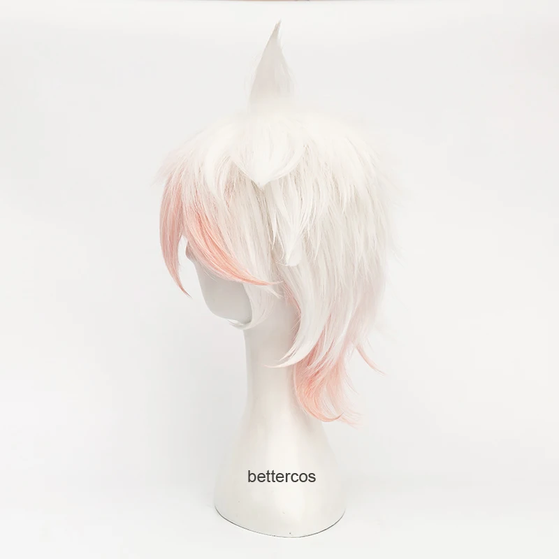 Парик для косплея Danganronpa Dangan Ronpa Nagito Komaeda, короткий, градиентный, белый, розовый, кудрявый, термостойкий, синтетический парик + шапочка для парика
