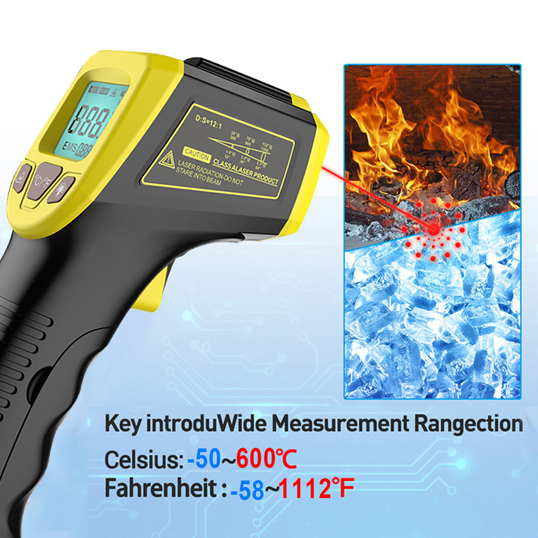 Диапазон температур: -50 ~ 600 ℃ (-58 ~ 1112 ℃).