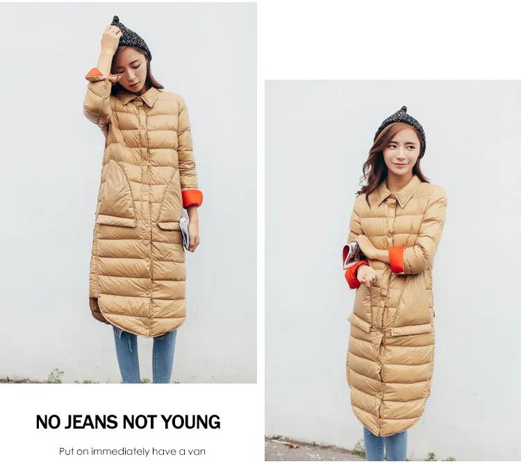 90% ультра-светильник, осенне-зимняя женская длинная куртка на утином пуху с капюшоном, Женское пальто, тонкие однотонные куртки, пальто, портативные парки