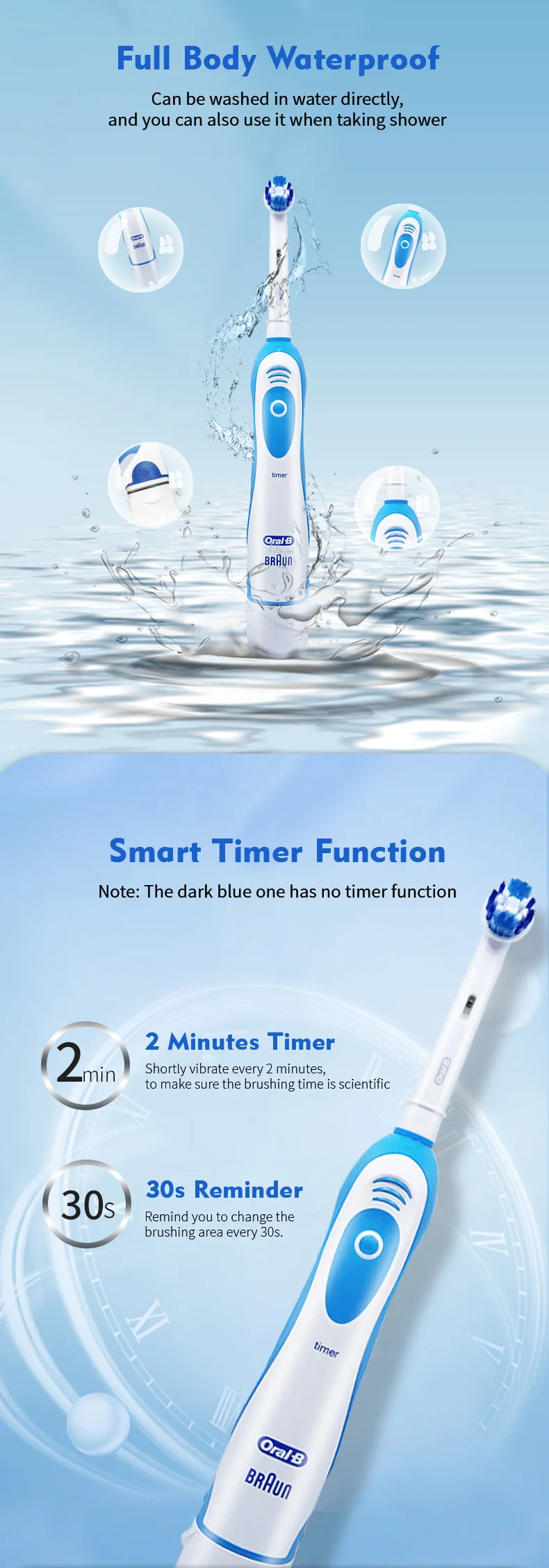 Светло-синий таймер 2 минуты, темно-синий таймер 2 минуты.