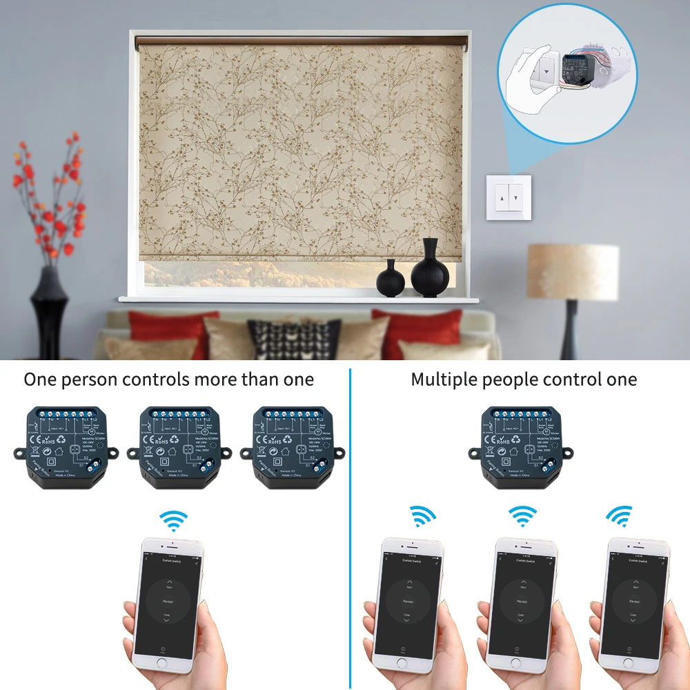 После установки этого модуля ваш настенный ручной переключатель все еще работает, он может открывать, приостанавливать или закрывать затвор, а также становится умным.