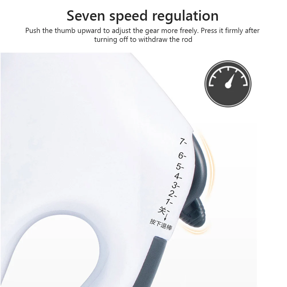 * 2. 7 скоростей s с высокой мощностью-Электрический Миксер с 7 скоростями может размешать еду разной мягкости, легко использовать для начинающих, идеально подходит для яиц, пасты, молочного коктейля, детского питания, варенья и т. Д.