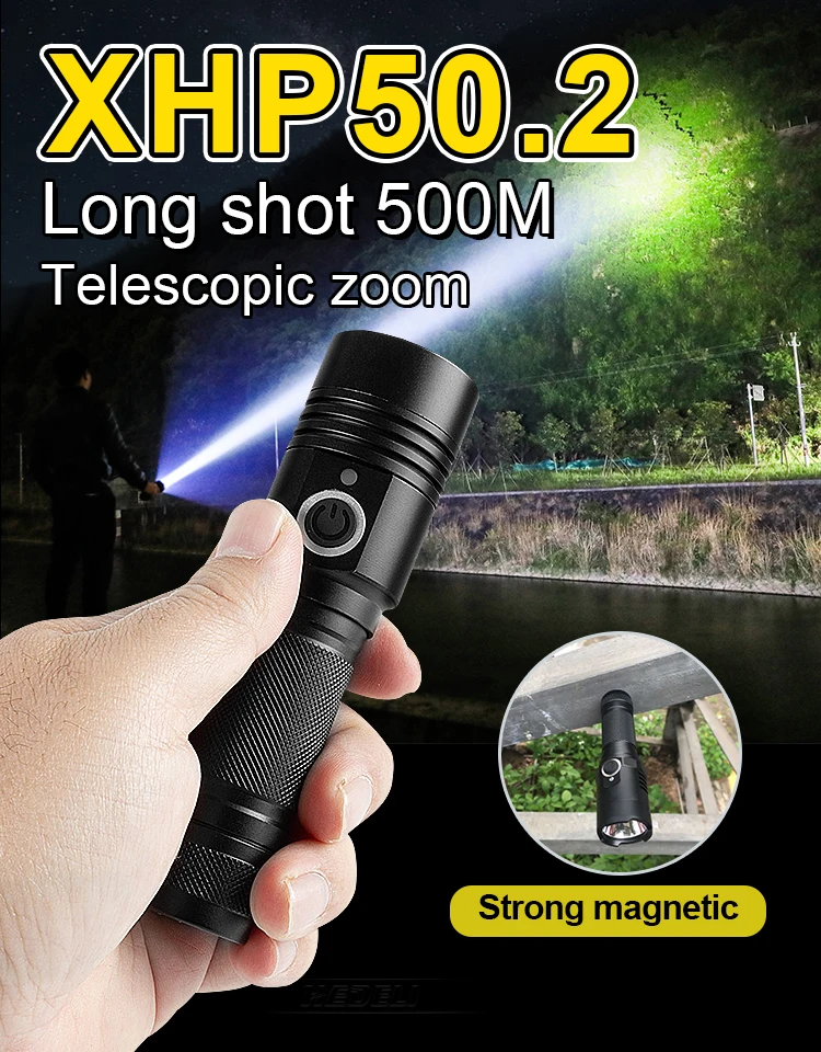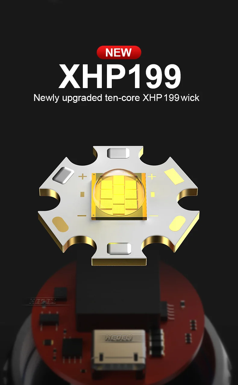 • Самый мощный тактический фонарик, с помощью самого мощного XHP199 светодиодный фитиль
