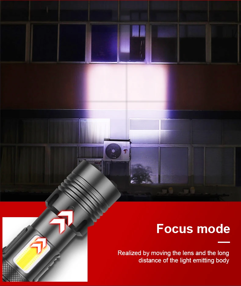 • 7 режимов, COB светильник (красный светильник и белый светильник) сбоку