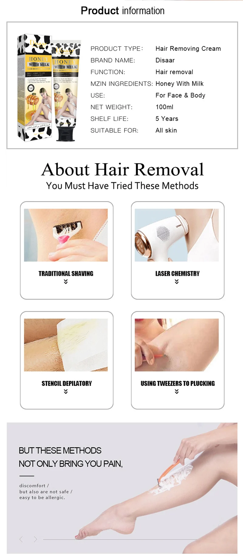 Название продукта: мед, Молоко Крем для удаления волос (без коробки)