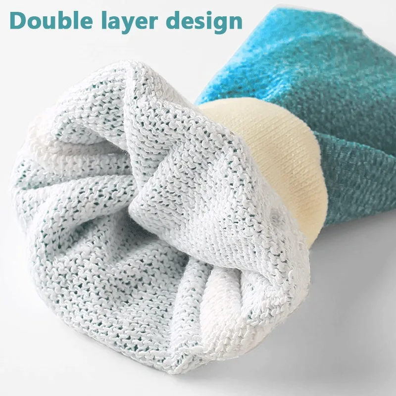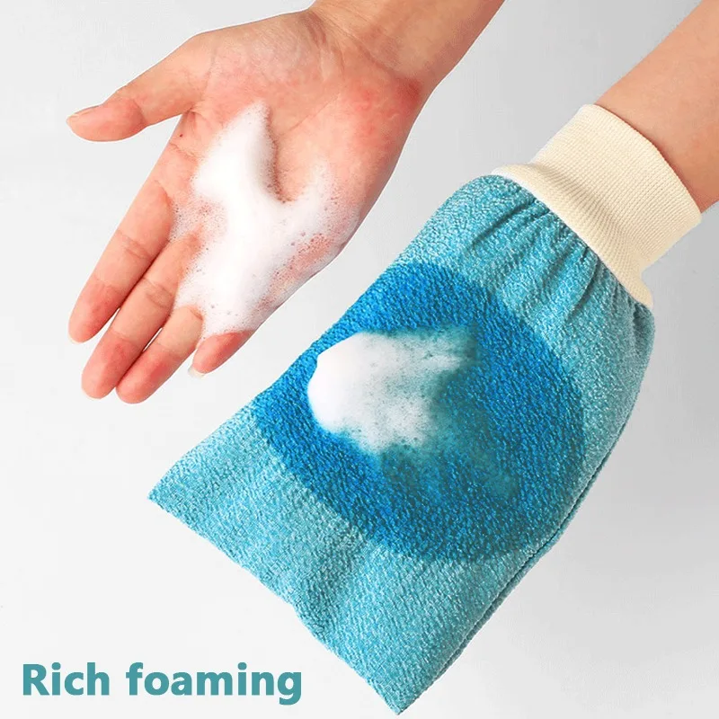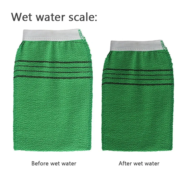 3. Намочите перчатку и выдавите излишки воды. Перчатка должна использоваться только на влажной коже, а не под струей воды. Потрите кожу энергично в вертикальном направлении, пока не увидите хлопья отшелушивающей кожи.