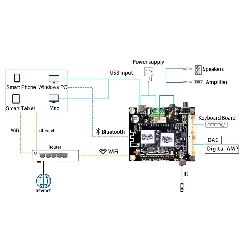 Беспроводной Wi-Fi Bluetooth модуль Up2Stream WiFi BT5.0 аудио приемник модуль