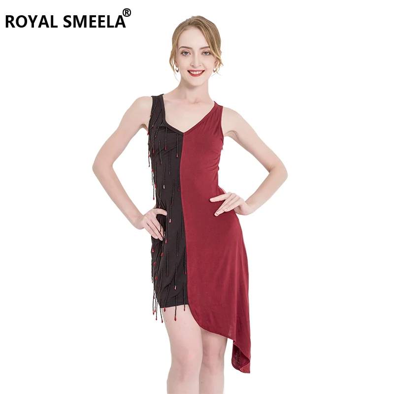 Сексуальное маленькое платье с v-образным вырезом для латинских танцев, Комбинированная юбка для латинских танцев, платье для сальсы, платье Танго, бальная юбка с бусинами и кисточками