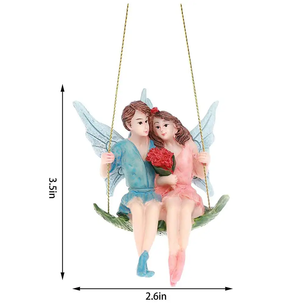 Влюбленные Феи качаются на качелях, а маленькие животные вокруг. Садовые Феи окрашены в мягкие цвета и станут прекрасным дополнением к устоявшному сказочному саду.
