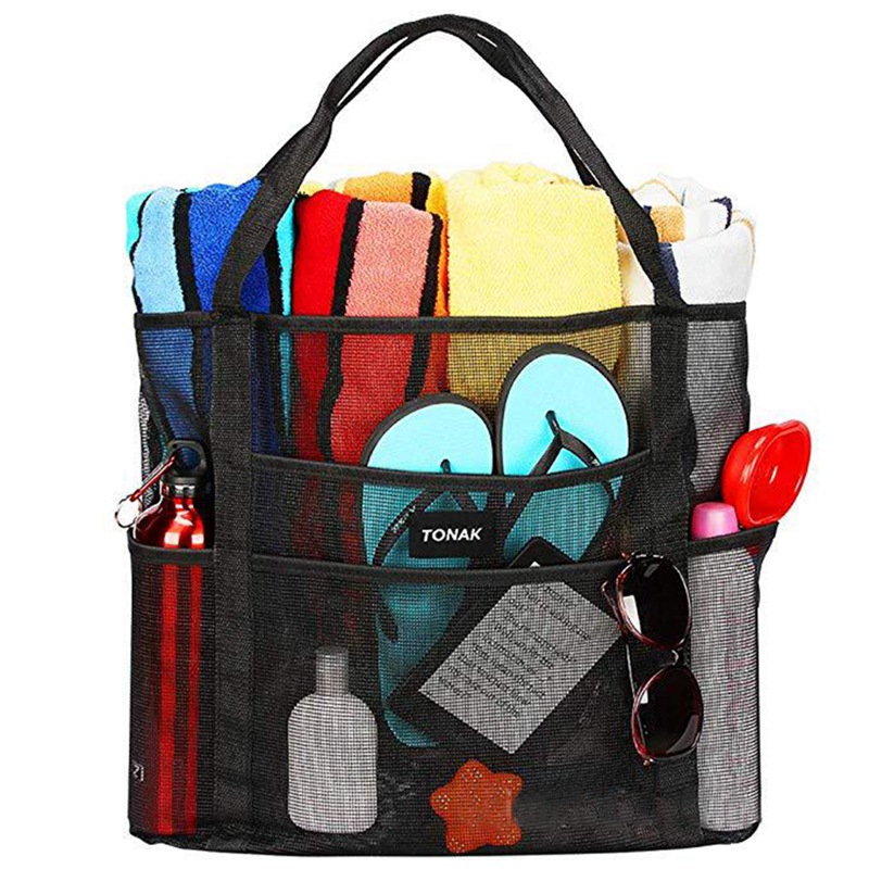 Негабаритная сетчатая хозяйственная сумка: сетчатая пляжная сумка достаточно большая, чтобы носить с собой пляжные полотенца 4-6, бутылки для воды, игрушки, солнечные блоки, обувь, солнцезащитные очки и все, что вам нужно, подходит для многих случаев, таких как пляжная поездка, семейные дни и покупки продуктов.