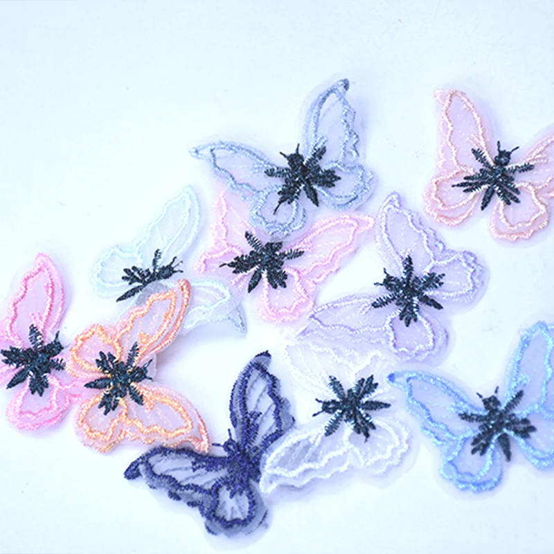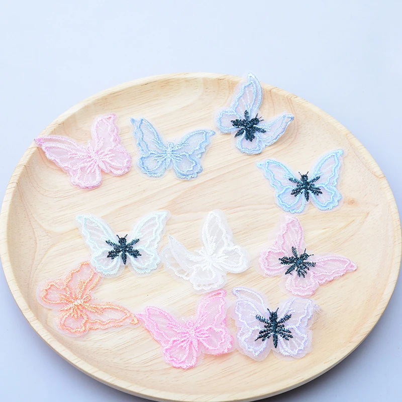 10 шт Двухслойная Золотая Серебряная линия вышивка бабочка кружева для Diy аксессуары для волос Одежда Украшение головного убора