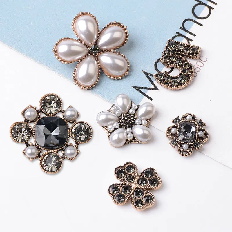 5 pcs Pearl Rhinestone buttons Alloy Material Flower Disk Rhinestone Buckle Accessories DIY Shoes, Clothes and Bow Tie Materials