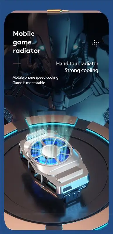 Кулер включает в себя 9-лопастной вентилятор, мощный рассеивания тепла, турбинных масел выхлопной системы для быстро рассеивается на мобильный телефон тепла.