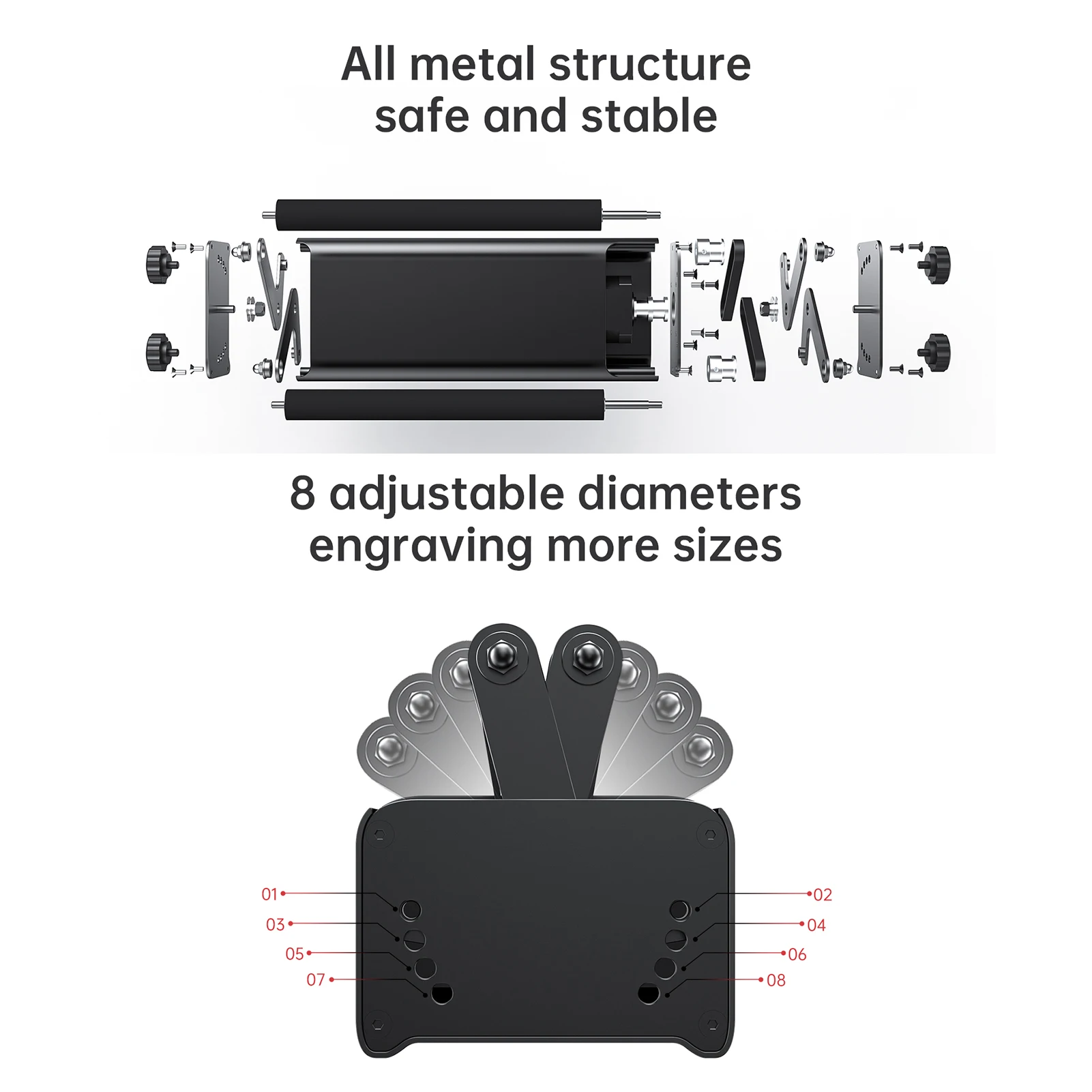 ATOMSTACK R3 ролик для цилиндрических объектов с вращающейся на 360 ° гравировальной осью 8 регулировочных углов диаметр гравировки 4 мм