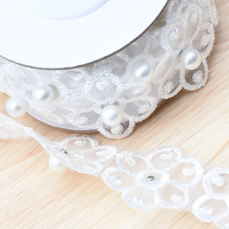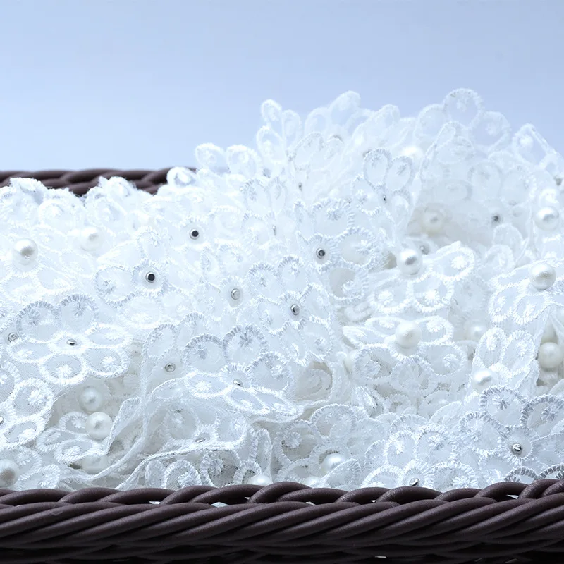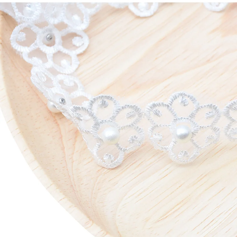 2 ярда 27 мм 6 лепестков цветок Бисероплетение кружево вышивка органза лента для Diy аксессуары для волос одежда головной убор шитье отделка украшение