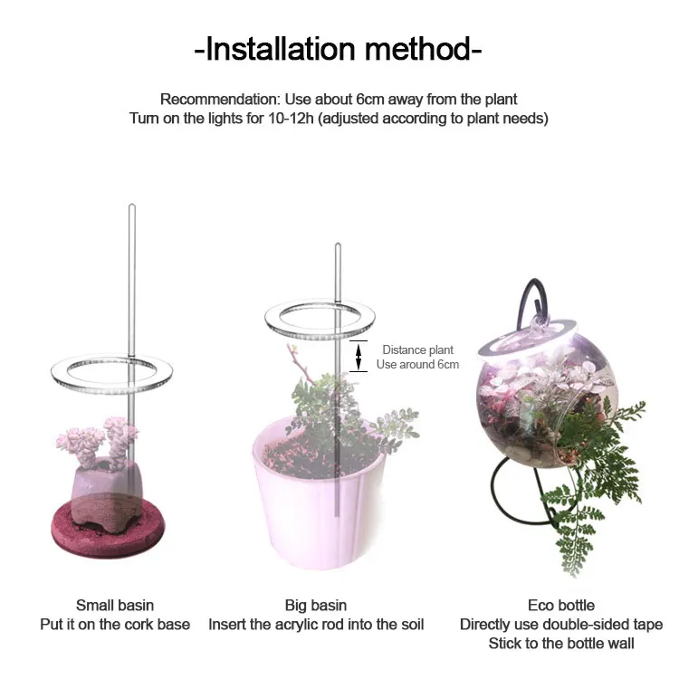 Предложение: Используйте на расстоянии около 6 см от завода и включите светильник в течение 10-12 часов (Отрегулируйте в соответствии с потребностями завода)