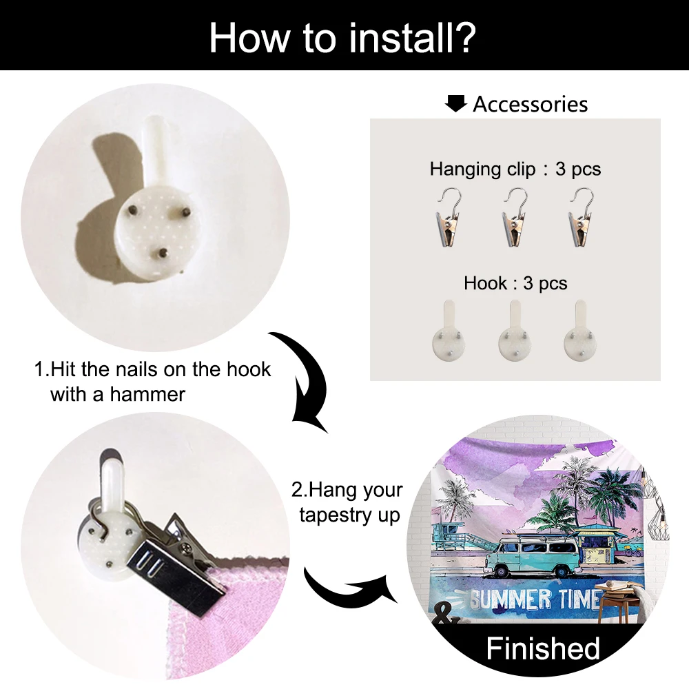 Упаковка: 1 шт. (включая 3 немаркированных гвоздя, 3 зажима)