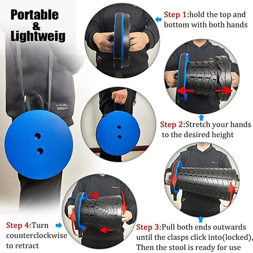 3. Портативный дизайн: Портативный Телескопический табурет оснащен регулируемым нейлоновым ремешком, который нелегко сломать и деформировать. Его можно носить вручную и носить на одном плече.