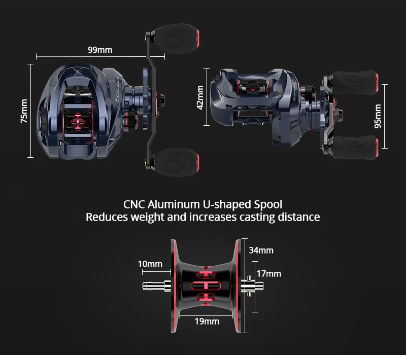 Супер удобный дизайн-Новый! Катушка для ловли наживки бейтуса X2 готова обеспечить непревзойденную производительность и комфорт! Благодаря весу всего 190 г Эта катушка для ловли наживки компактного размера 42 мм сочетает в себе гладкие боковые крышки и углубленный циферблат регулировки торможения, что делает катушку удобной даже после тысяч забросов в течение дня рыбалки.