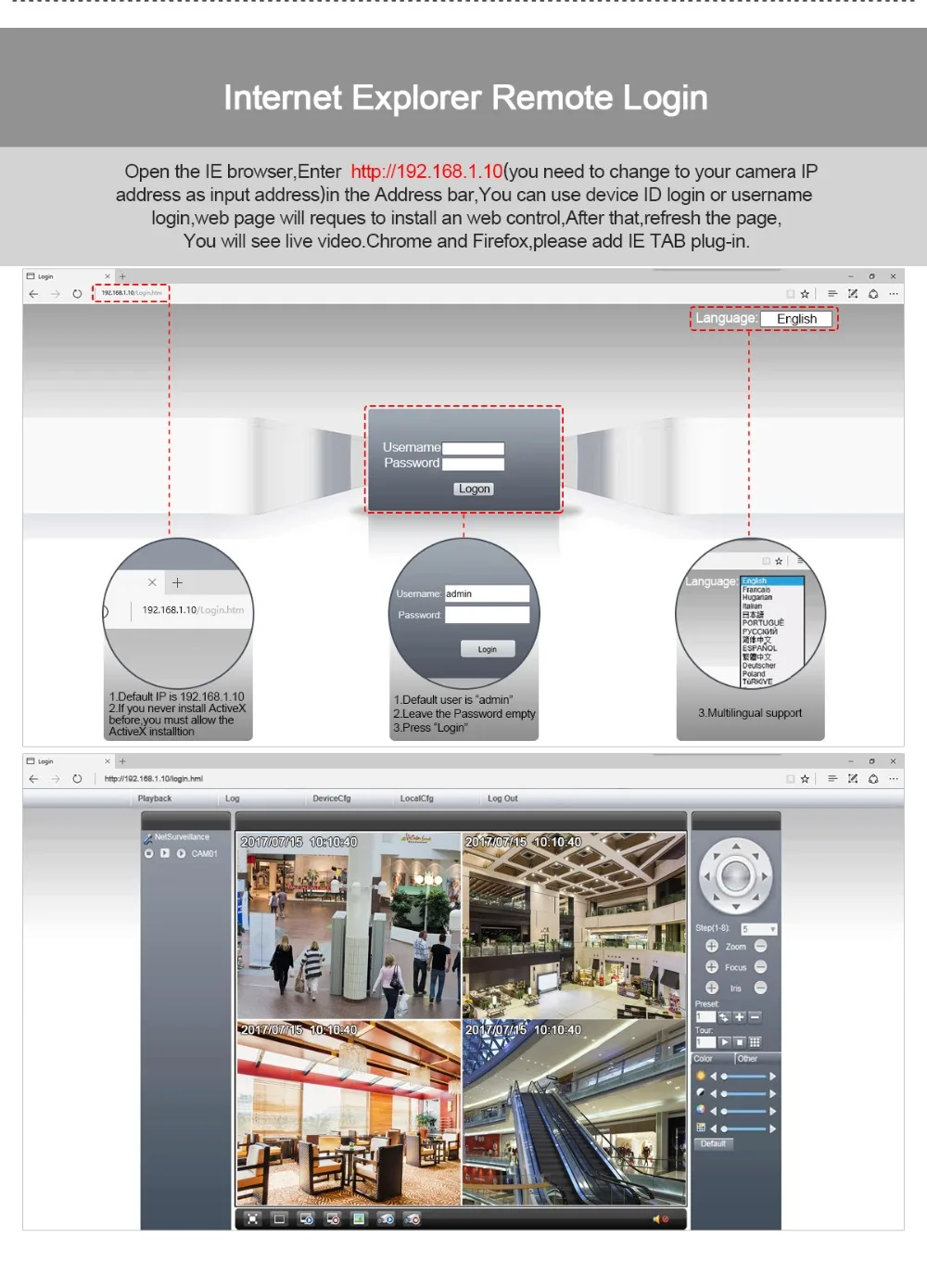 Каждый экран может быть установлен на 192 (16*12) зоны обнаружения; Многоуровневая Чувствительность может быть установлена (ограниченный местный канал)