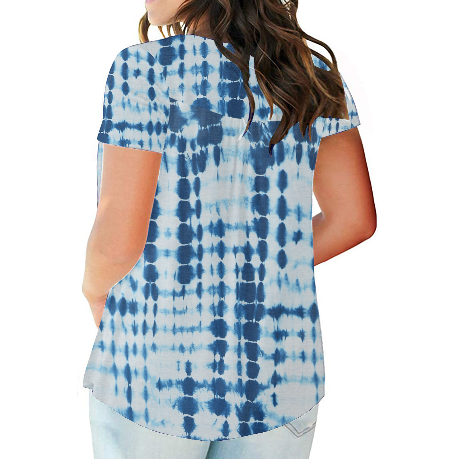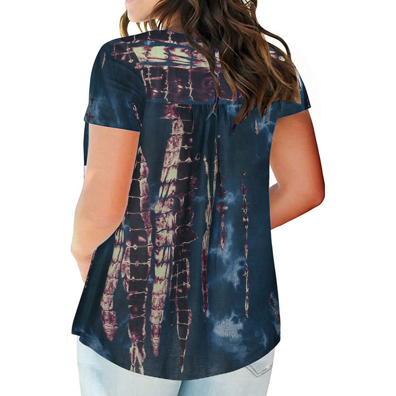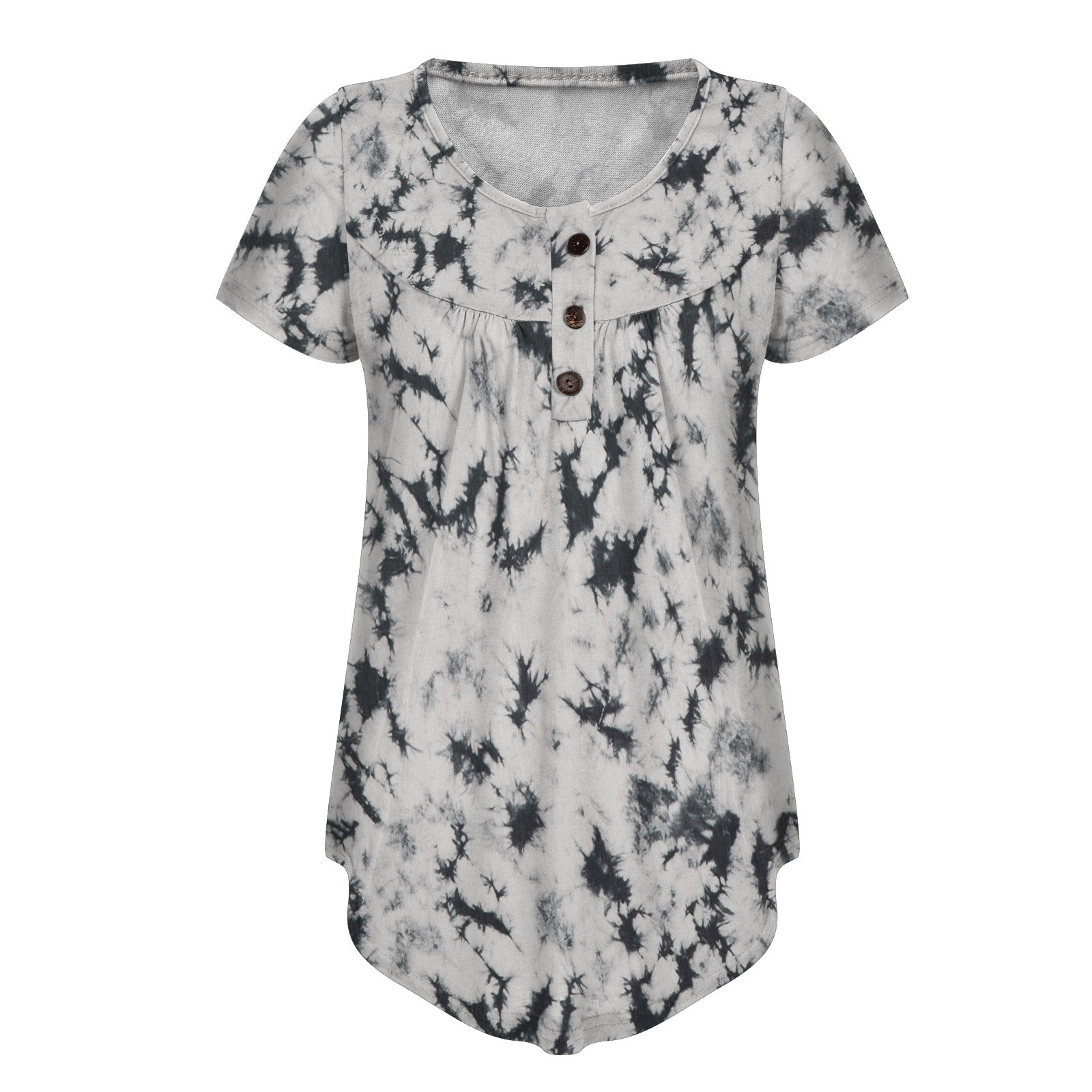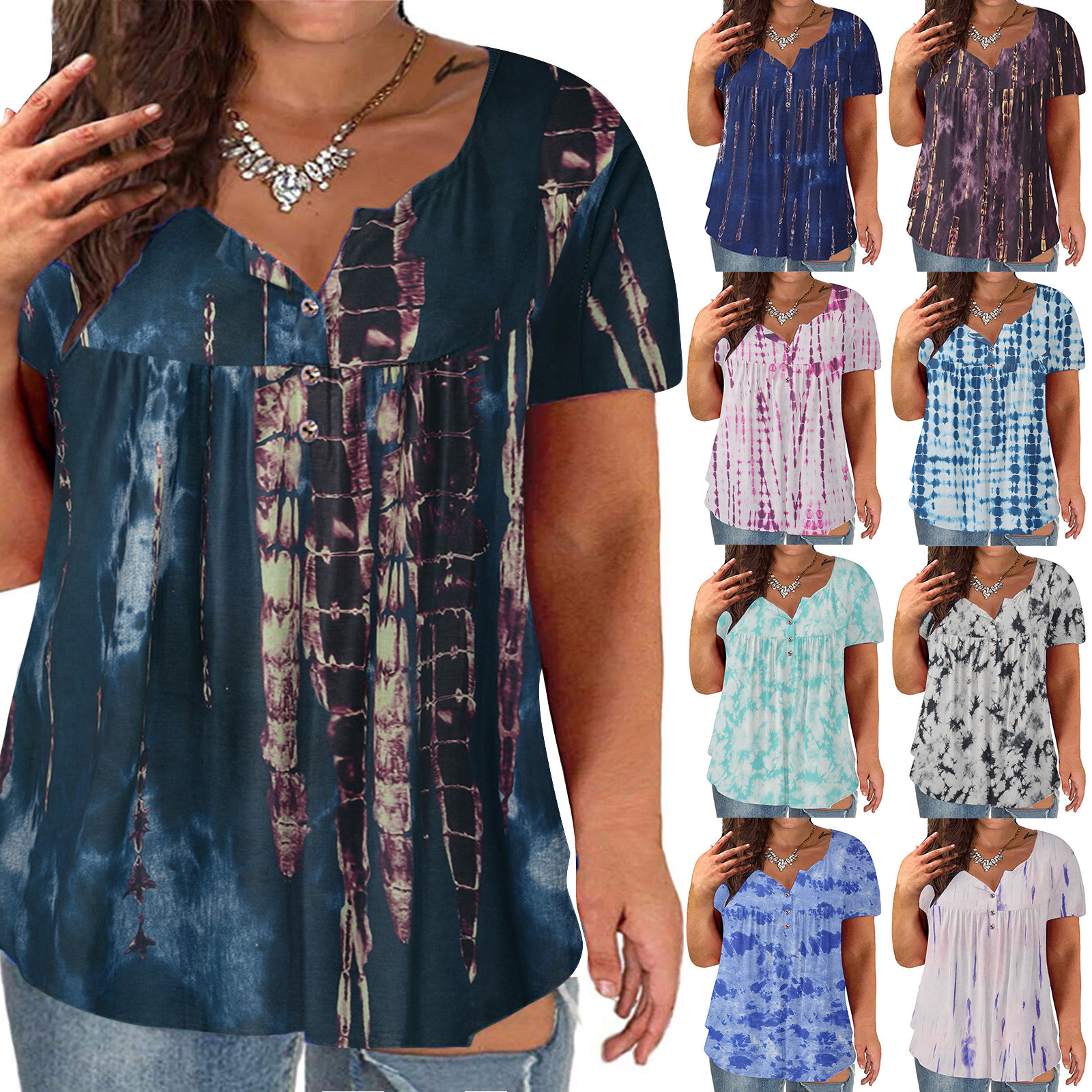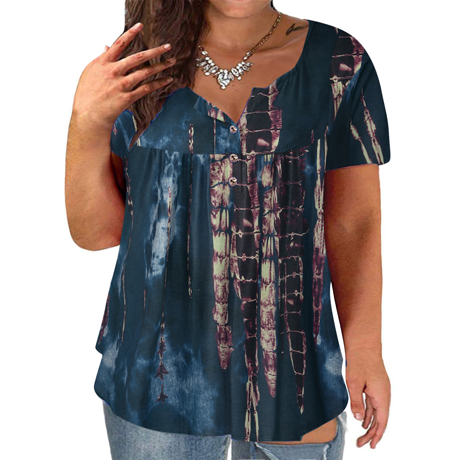 Женский топ с v-образным вырезом и принтом на пуговицах, топ с короткими рукавами, блузка, большие размеры