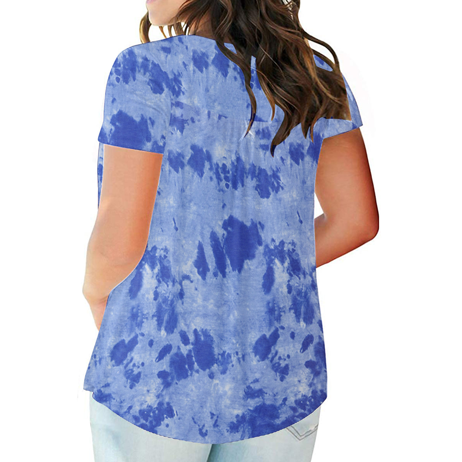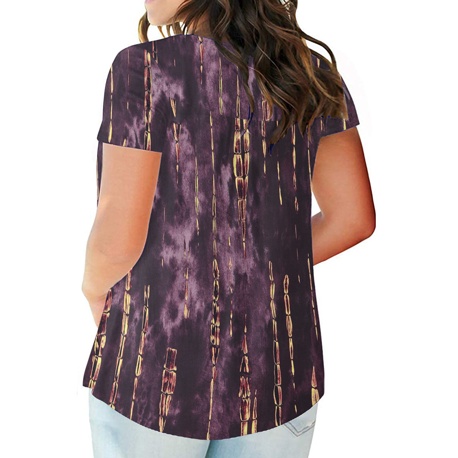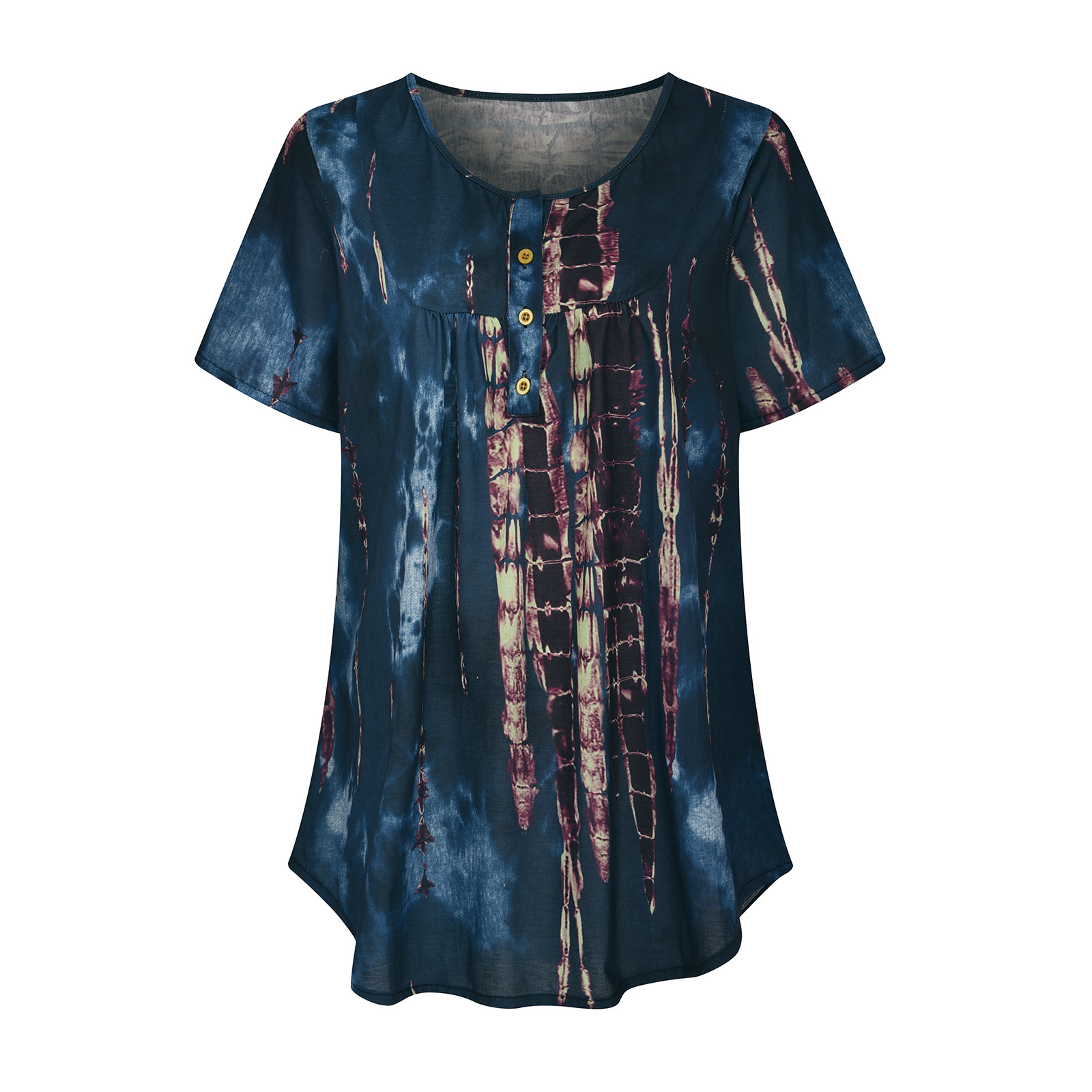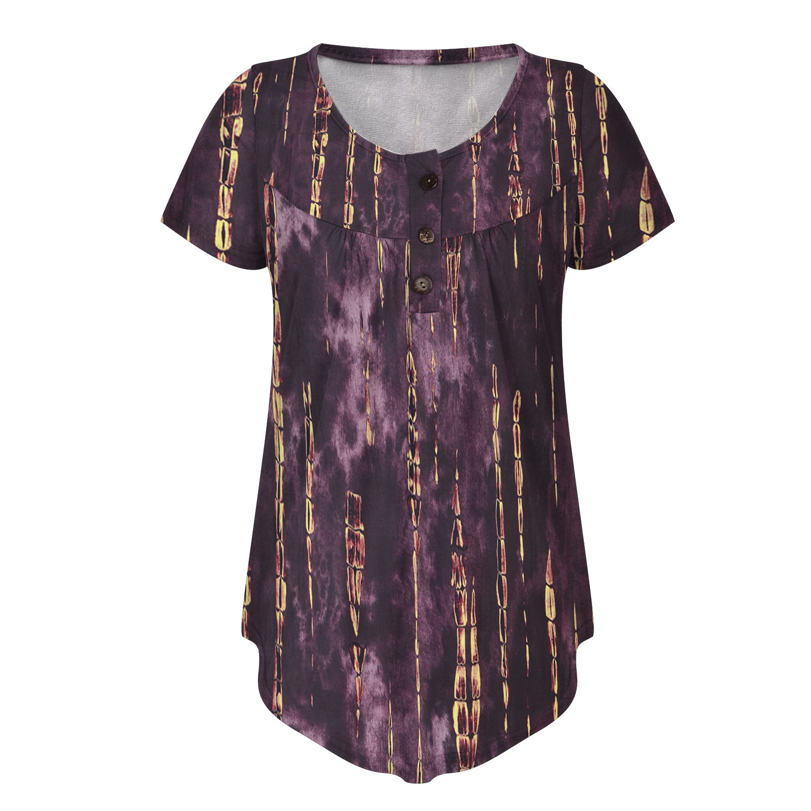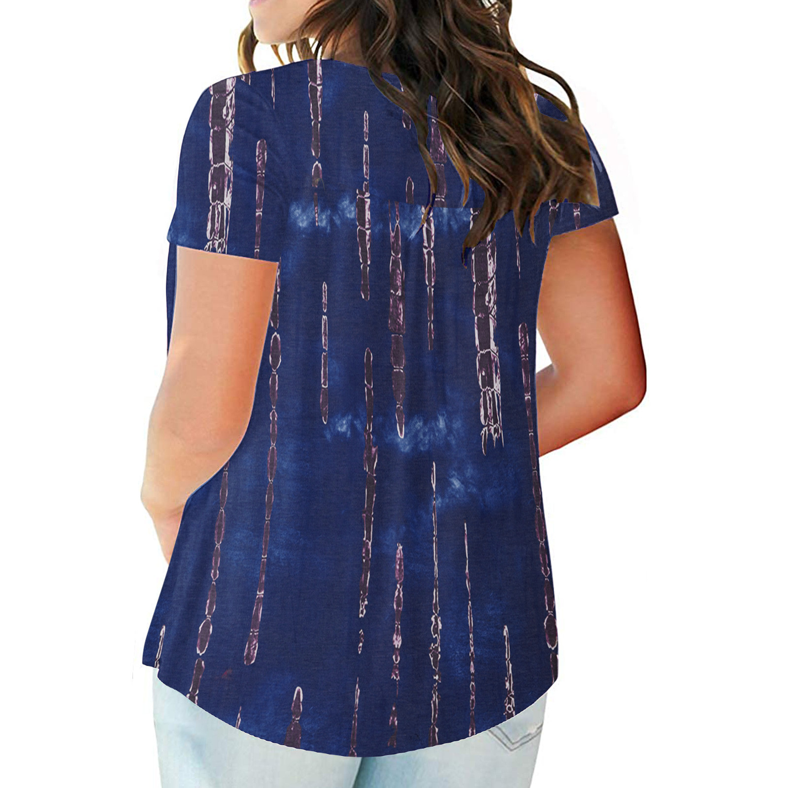 Женский топ с v-образным вырезом и принтом на пуговицах, топ с короткими рукавами, блузка, большие размеры