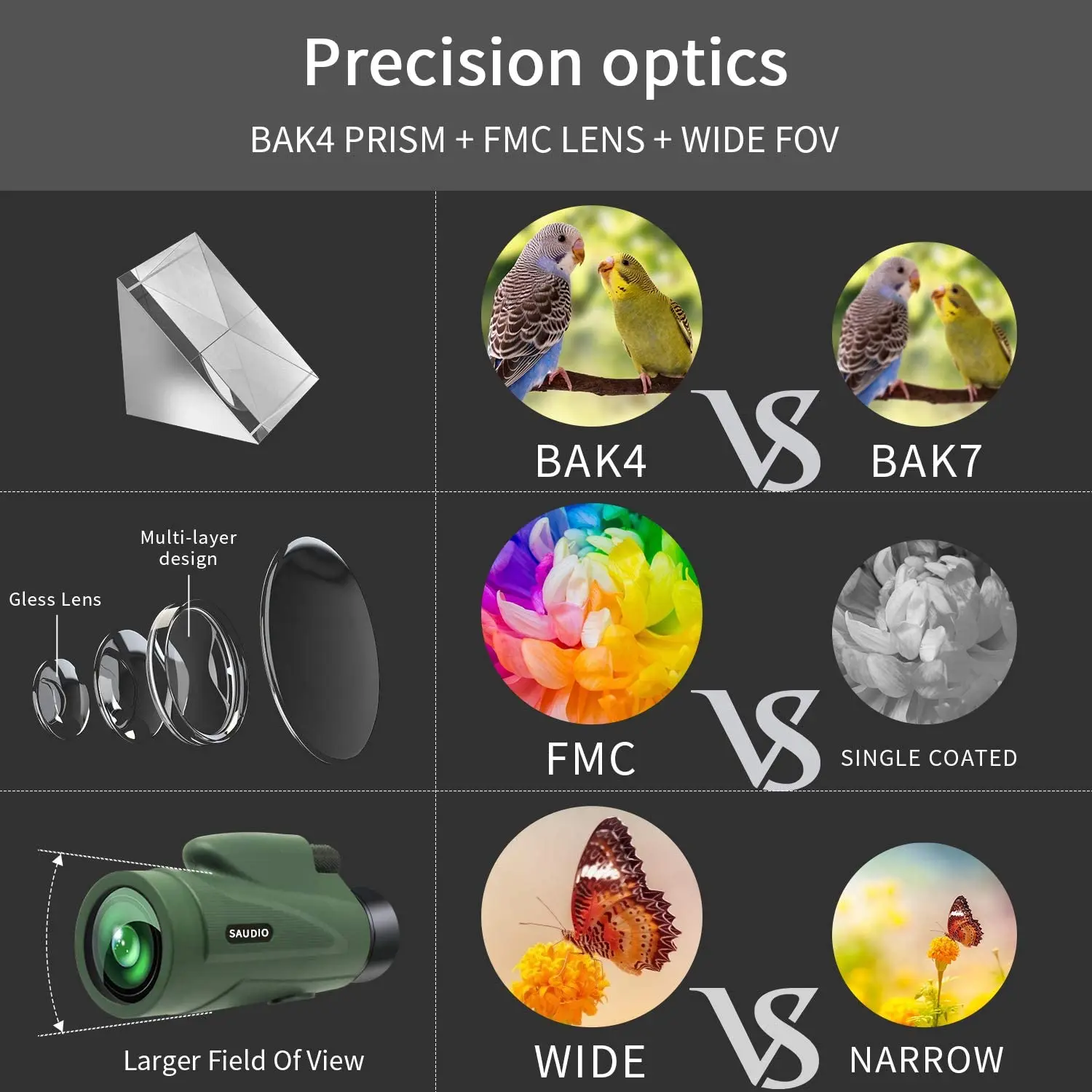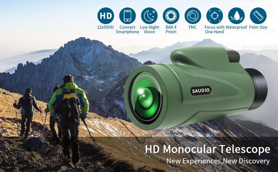 12X50 HD монокулярный телескоп с быстрым держателем для смартфона, Монокуляр ночного видения для взрослых детей, SAUDIO водонепроницаемый Монокуляр-Призма BAK4 для охоты, наблюдения за птицами, спорта Watchig