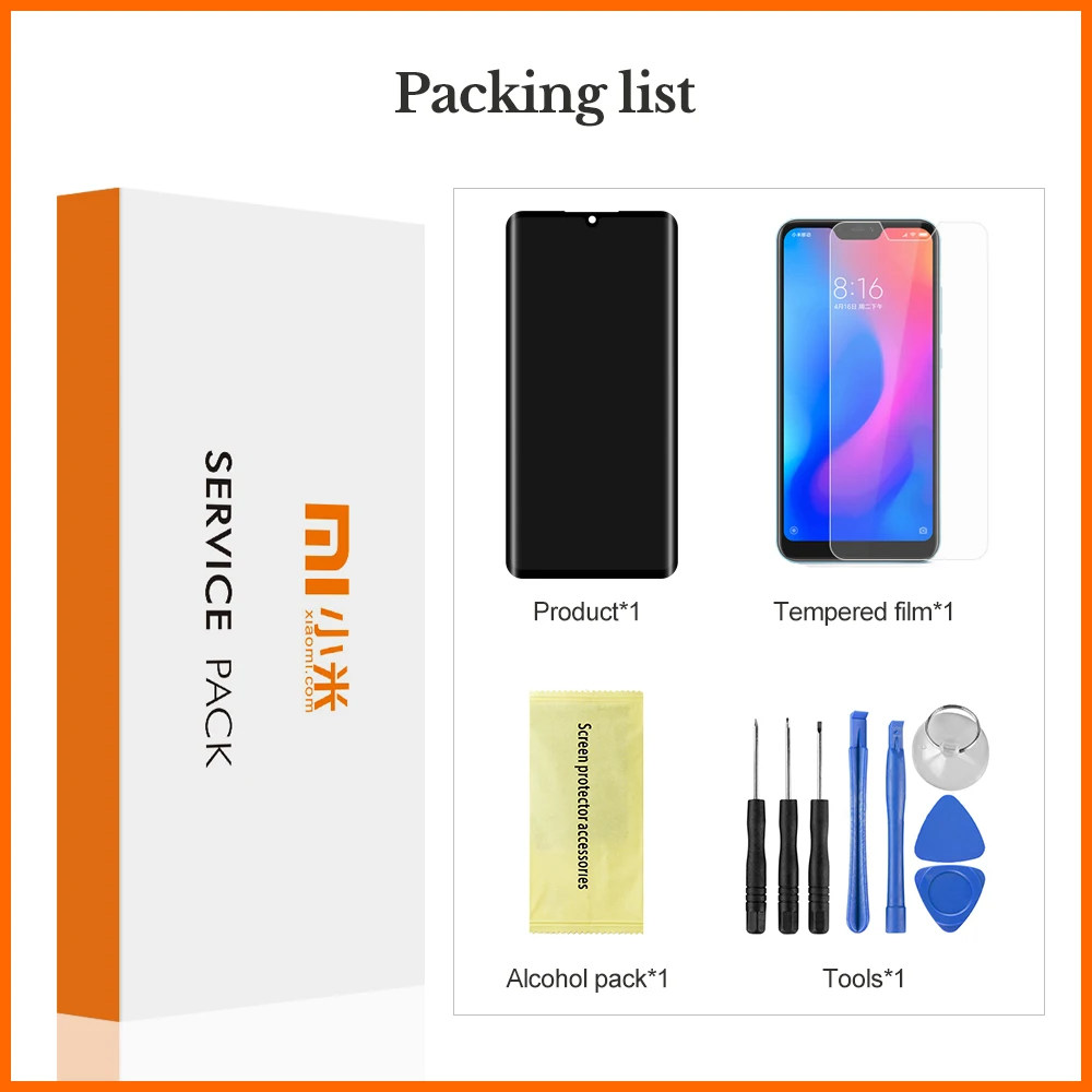 1 * шт ЖК-экран1 * Набор инструментов для технического обслуживания1 * шт закаленное стекло1 * спиртовая упаковка