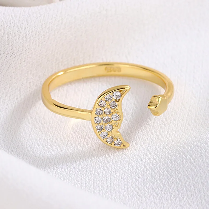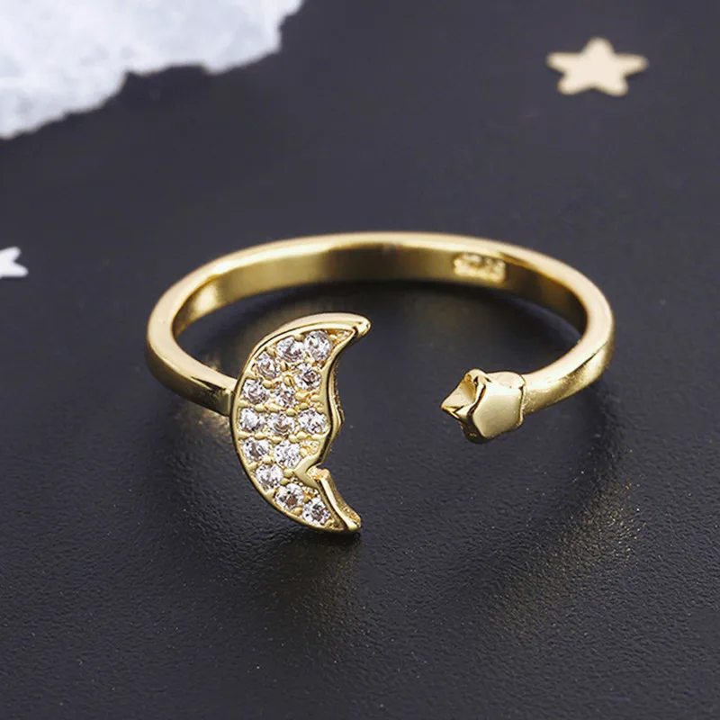 Горячая Распродажа, маленькая свежая Звезда и луна, инкрустированное цирконием, Открытое кольцо для женщин, студентов, корейские ювелирные изделия, подарок, одна капля J01207