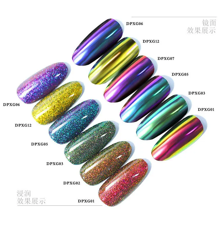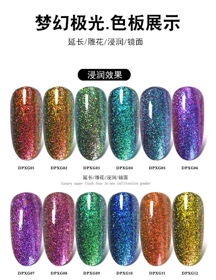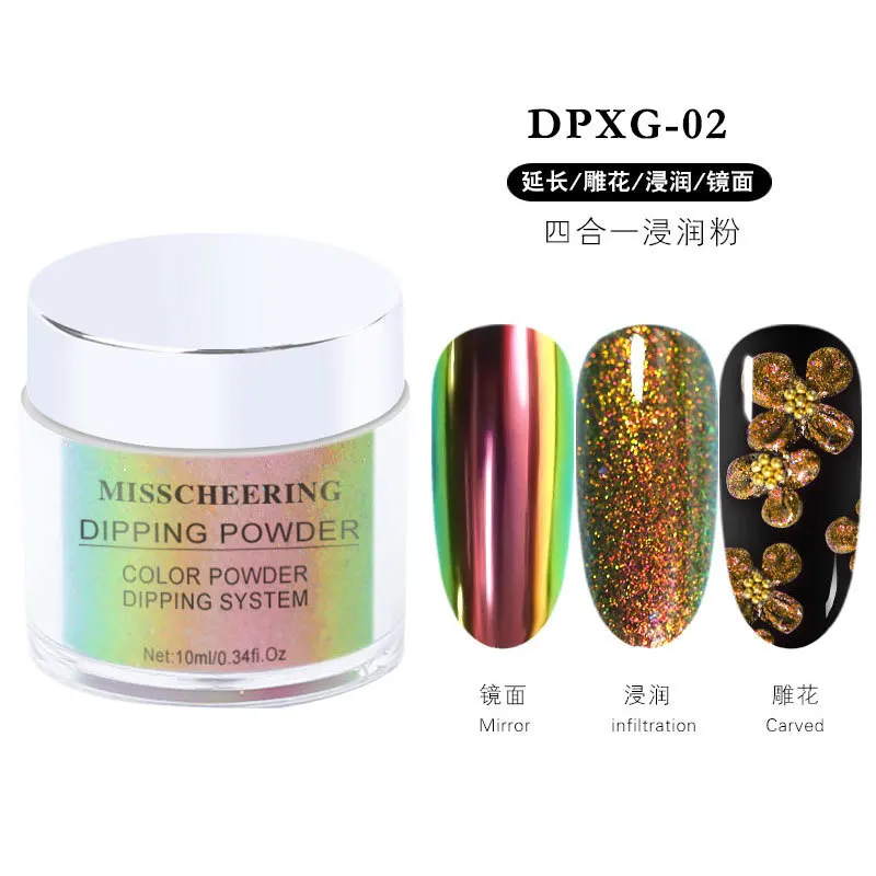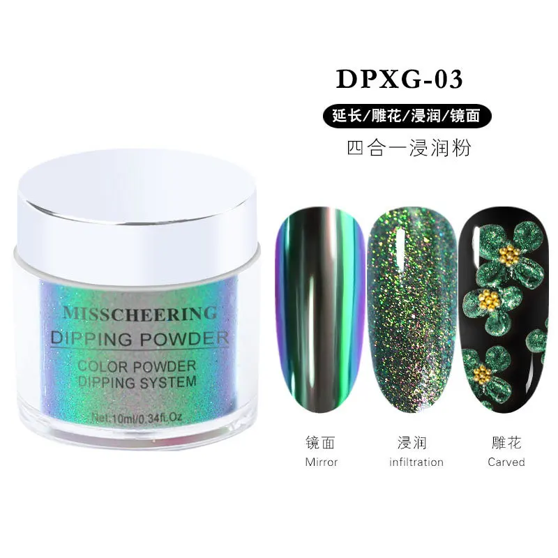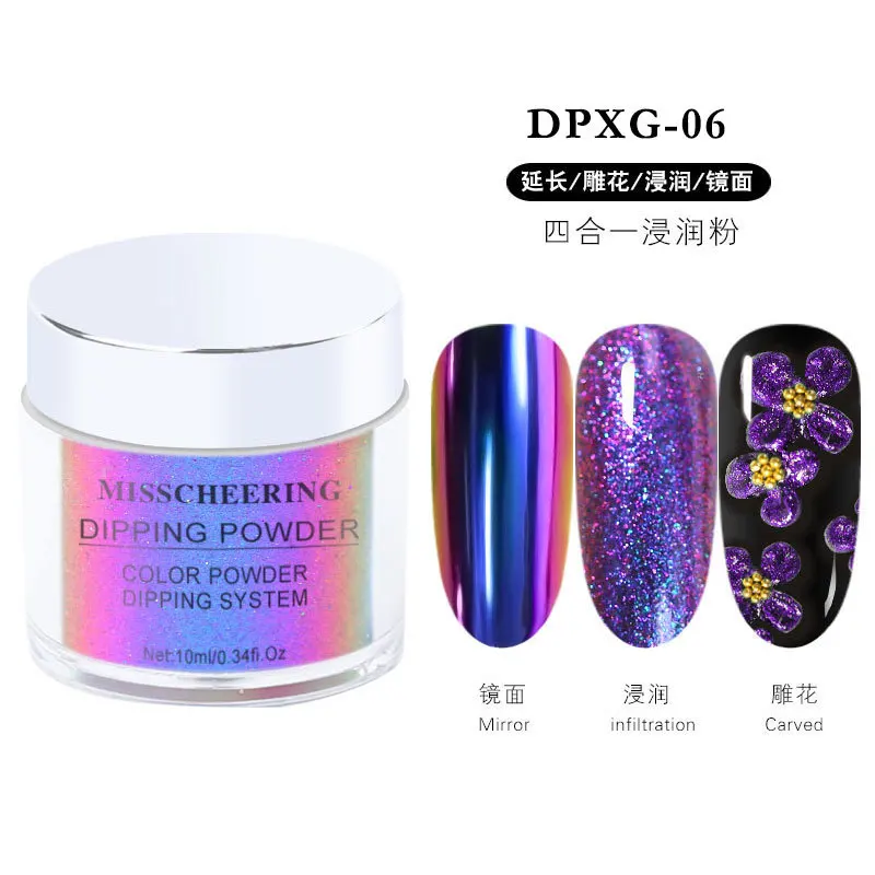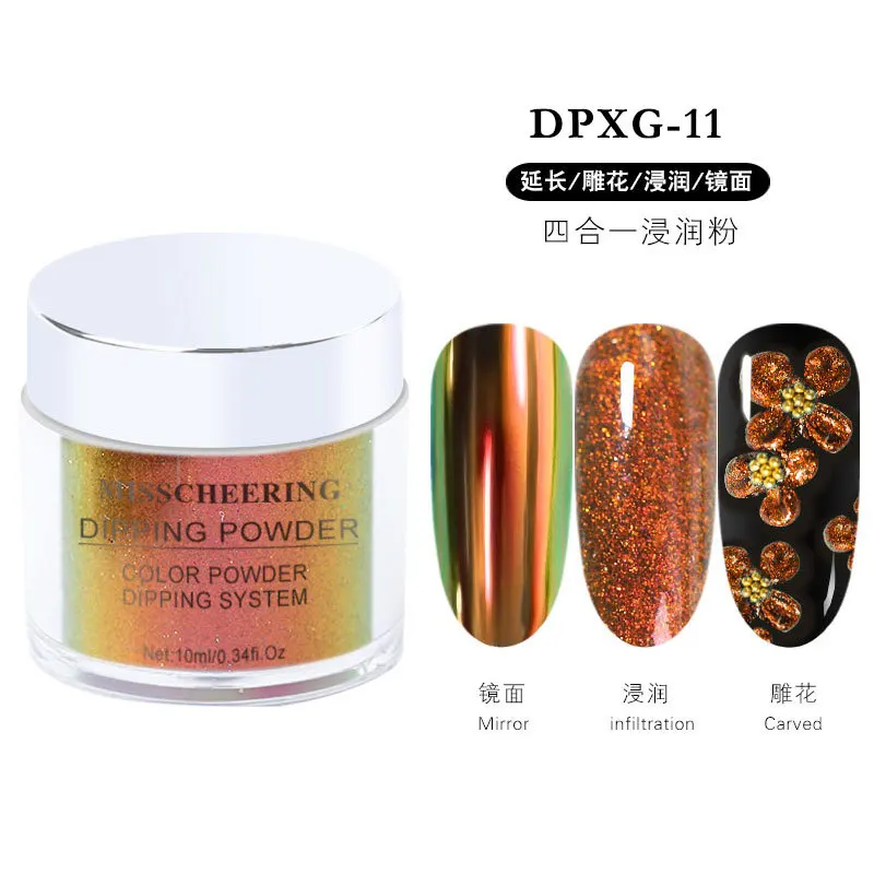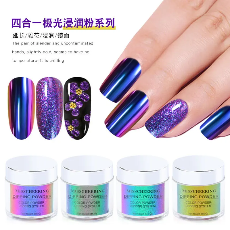 Четыре в одномХамелеон Ногтей Блеск порошки зеркальный эффект окунания порошок резной хром расширение пигмент для ногтей украшения