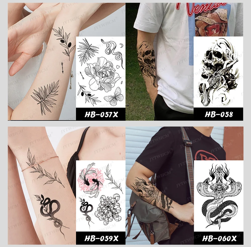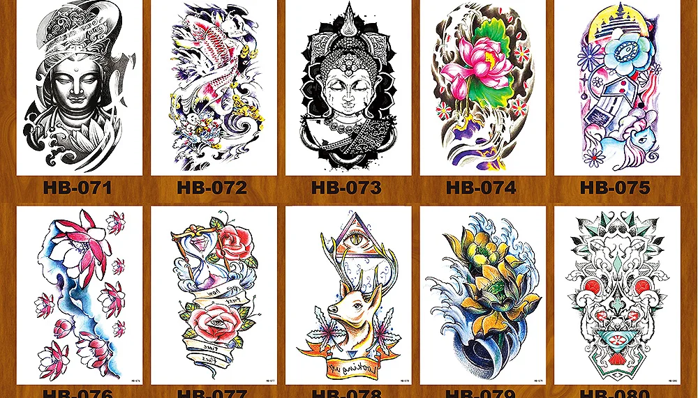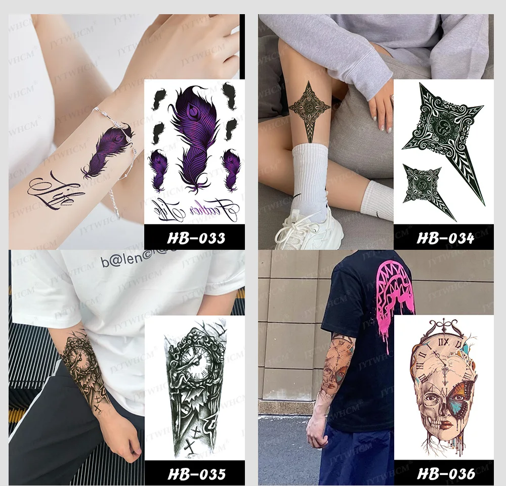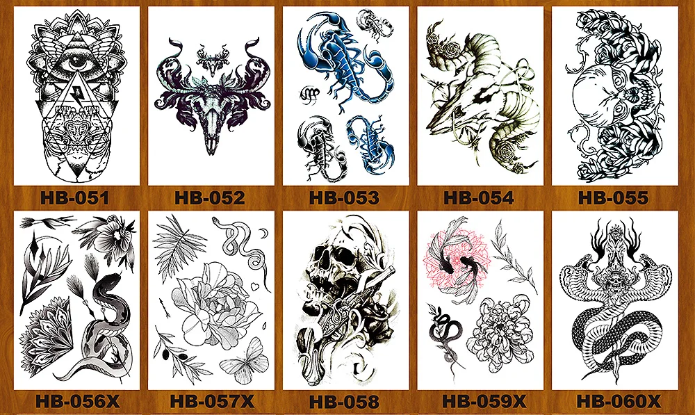 Наша серия HB имеет почти 1000 различных стилей татуировок, включая татуировки на руках, татуировки на бедрах, татуировки на груди, татуировки на спине, татуировки на талии, татуировки на шее и т. д. Нажмите на фотографии ниже, чтобы автоматически перейти к большему дизайну.