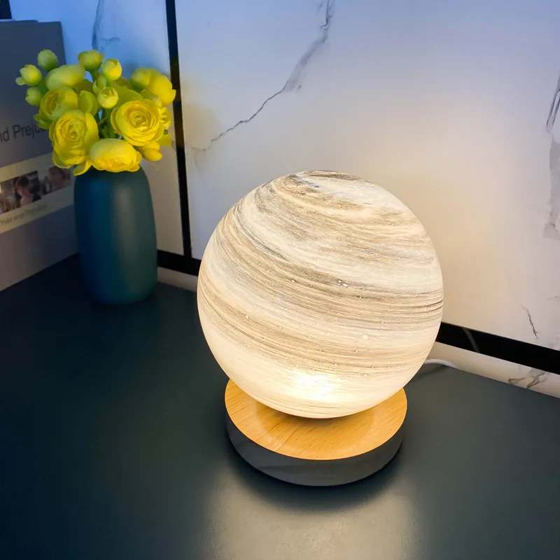 Пузырьковое стекло planet galaxy light с деревянным основанием