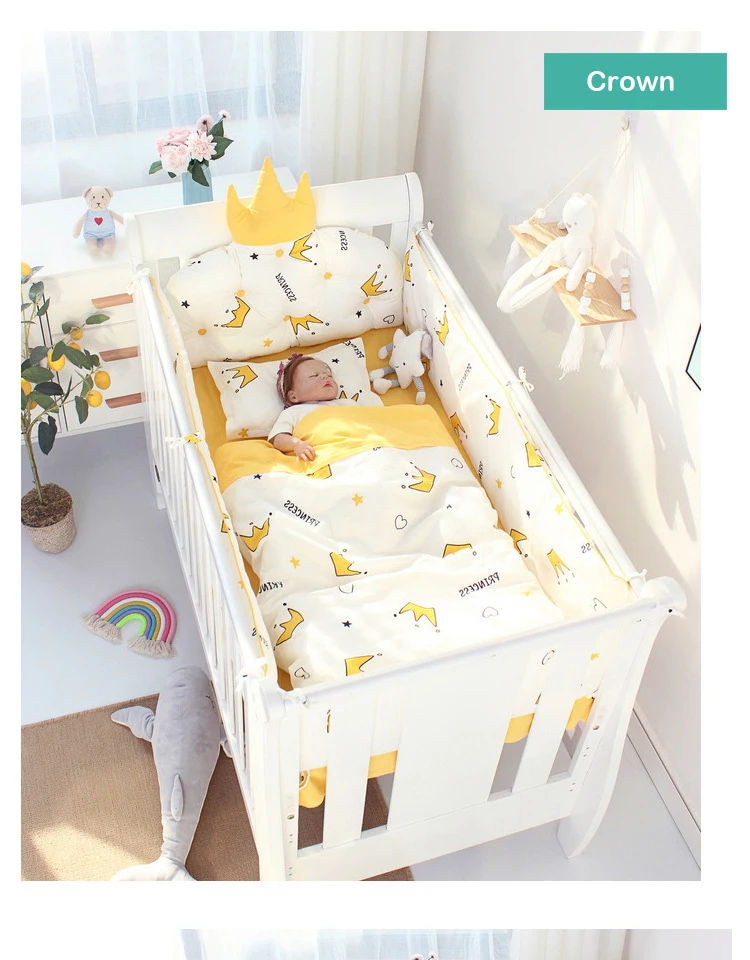 Бамперы для кроватки, защита для кроватки, чистый хлопок, бамперы для детской кроватки для новорожденных 70х12 0 см, подушка «Корона», бамперы, простыня