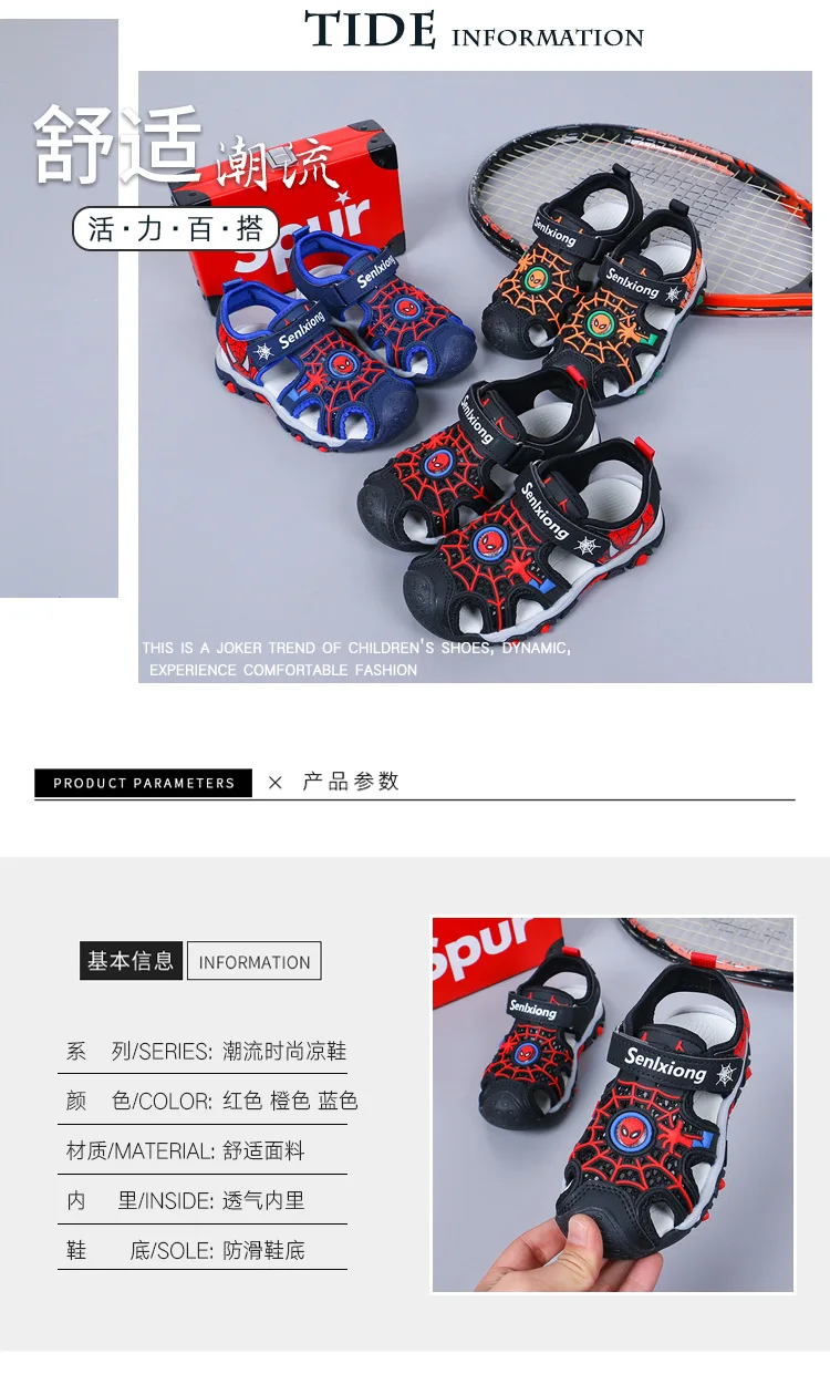 Сандалии для маленьких мальчиков; Летняя детская пляжная обувь с рисунком Человека-паука; Сандалии для мальчиков; Мягкие детские сандалии для малышей