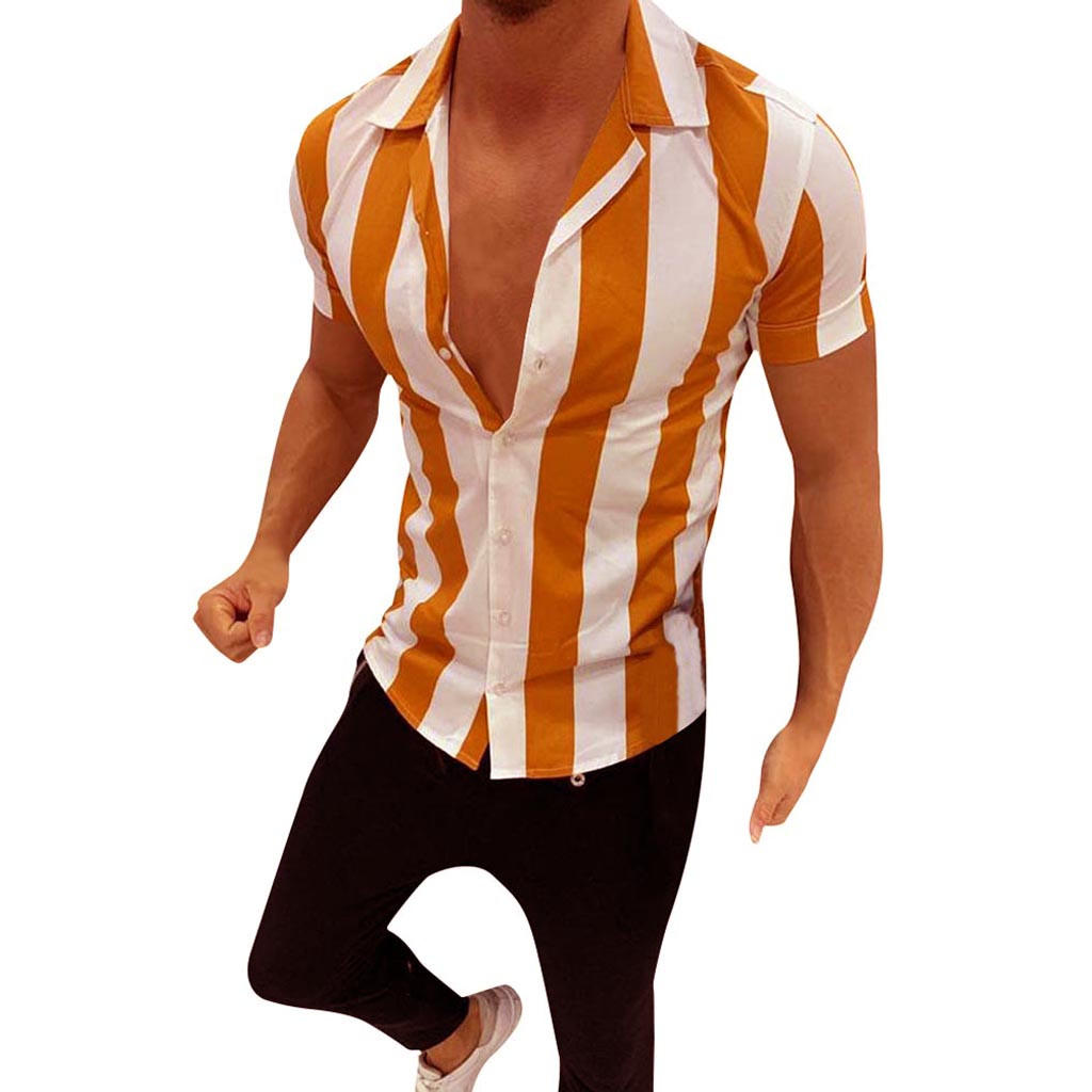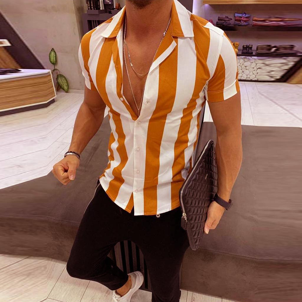 Мужская модная Свободная рубашка с коротким рукавом в разноцветную полоску