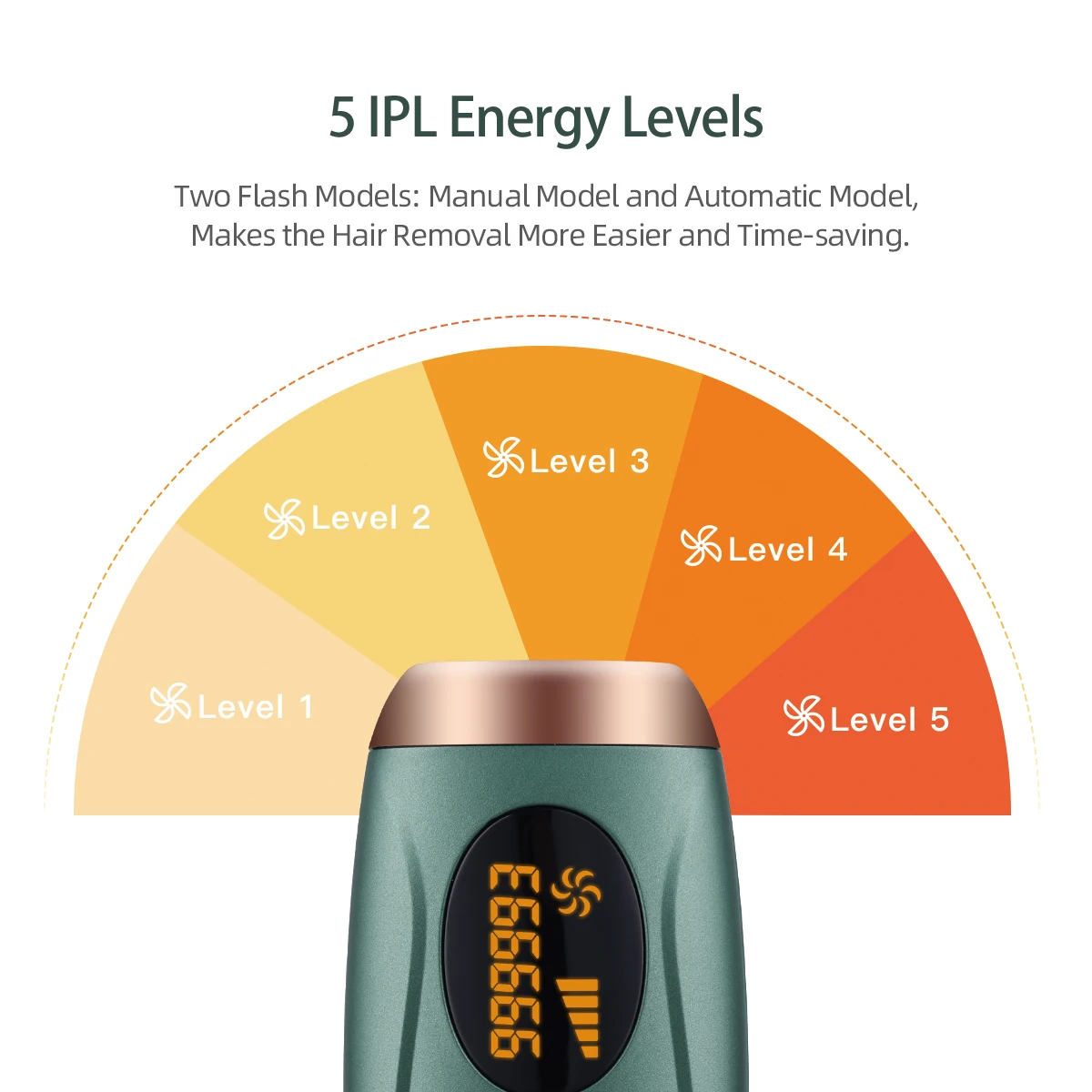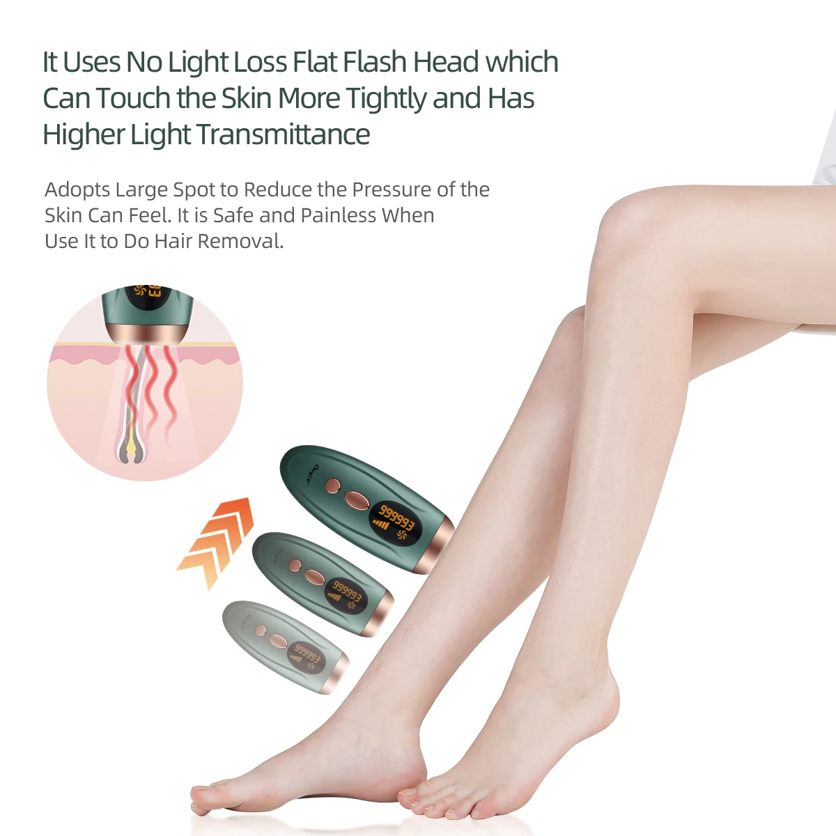 2. Устройство для удаления волос IPL использует большой светильник, чтобы уменьшить стресс на поверхности кожи. Это безопасно и безболезненно при использовании этого устройства для удаления волос.